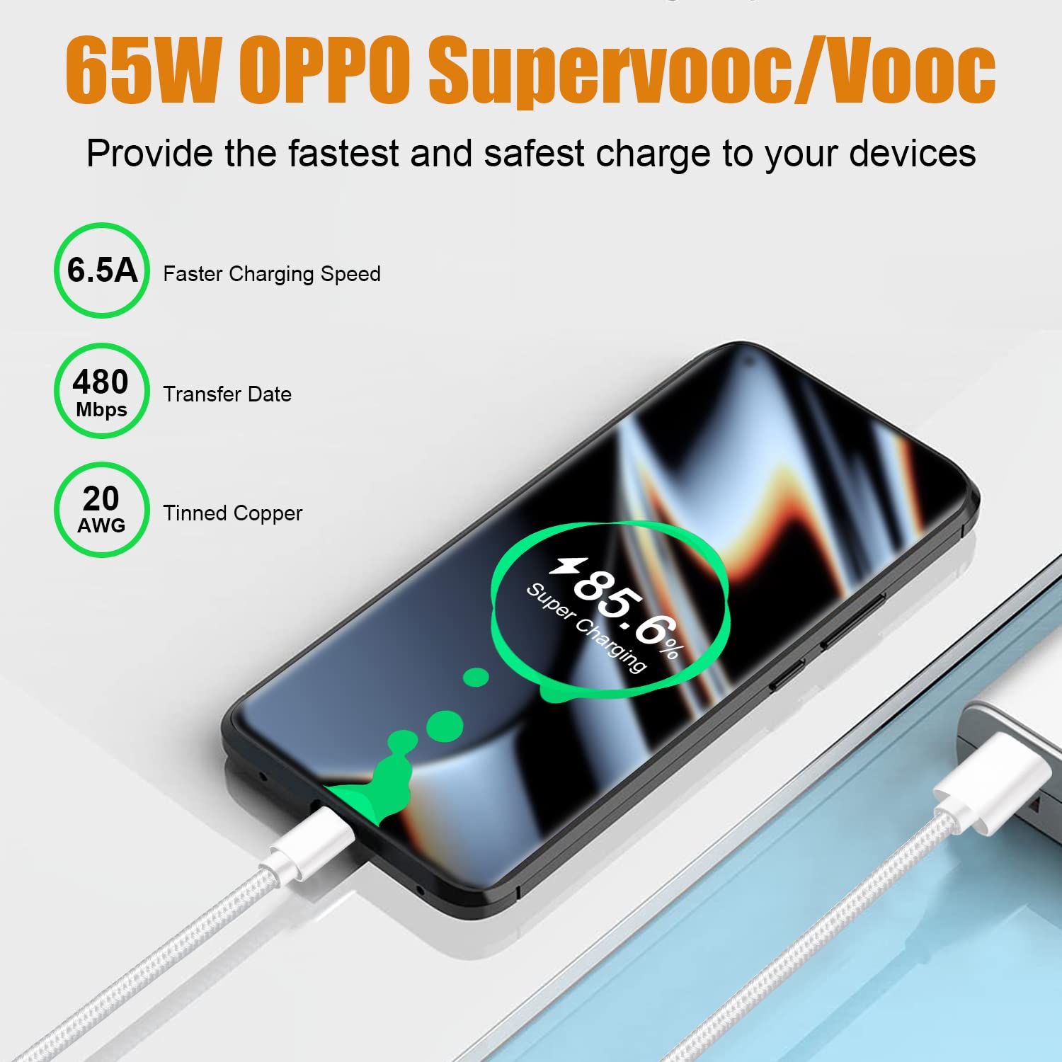 Esplora il prodotto 65W 1.8M Cavo di Ricarica Super-Vooc 10V/6.5A USB Type C per Oppo Find X5/X5 Pro/X5 Lite/X3 X2 Neo,Reno 8 Pro 5G/7 6 4/Reno4 Z 5G,A77 A76 A57 A96 A54S A54 A16S A94 A74 A53 A73 A57S, ideale per chi cerca qualità e convenienza.