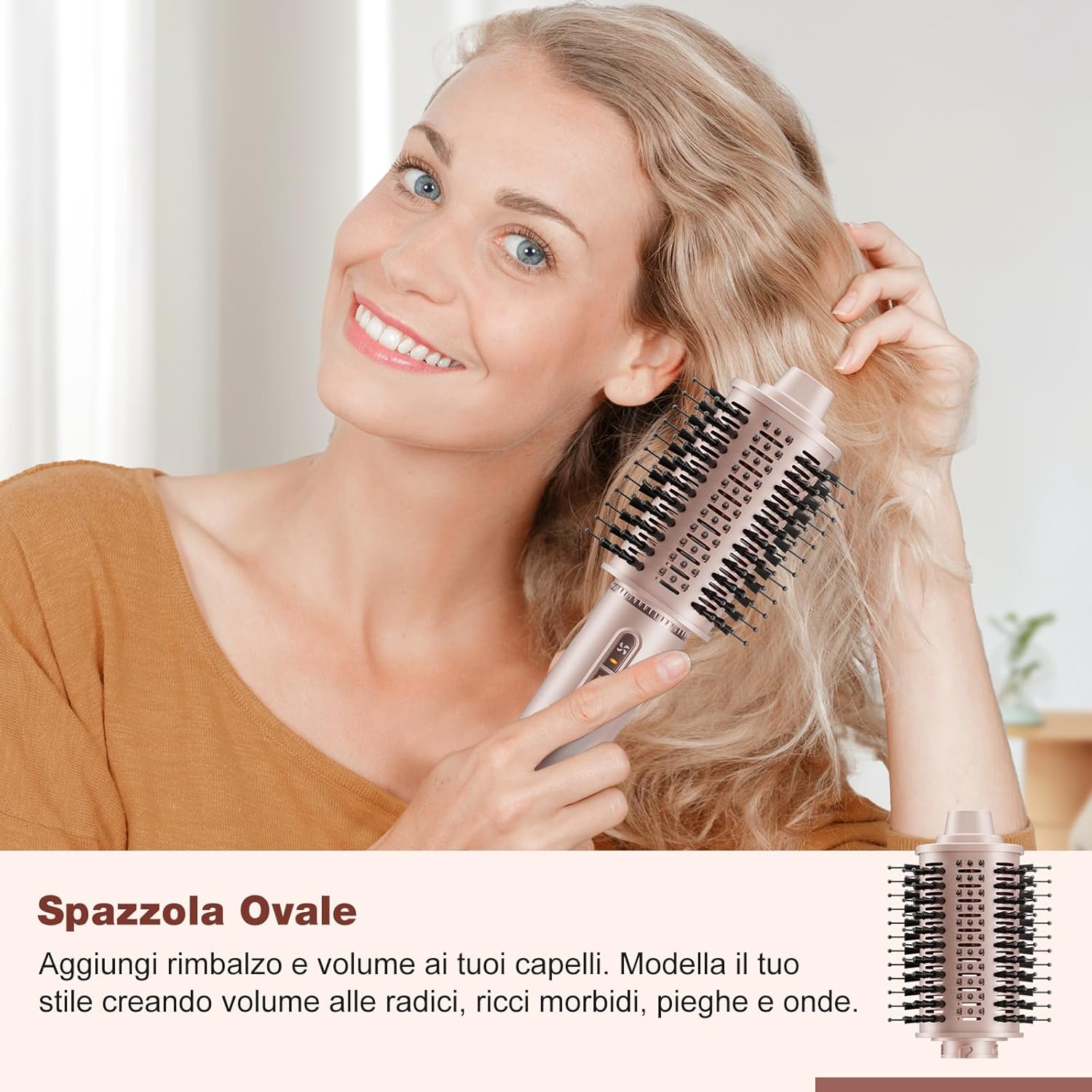 Il 7MAGIC offre diverse modalità di styling, permettendo di ottenere vari look, da un liscio perfetto a morbidi ricci. Le spazzole sono facili da sostituire e offrono risultati soddisfacenti. L’asciugacapelli ionico previene l’effetto crespo, mantenendo i capelli idratati.