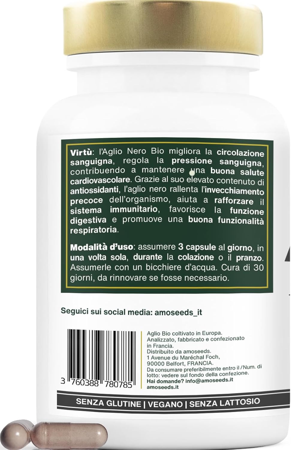 Ogni capsula contiene 900 mg di aglio nero, ricco di S-allilcisteina (SAC), un composto noto per le sue potenziali proprietà benefiche. L’allicina, un composto attivo dell’aglio, è nota per i suoi effetti positivi su cuore e circolazione. La qualità BIO è un ulteriore punto a favore, garantendo che l’aglio sia coltivato senza l’uso di pesticidi chimici.