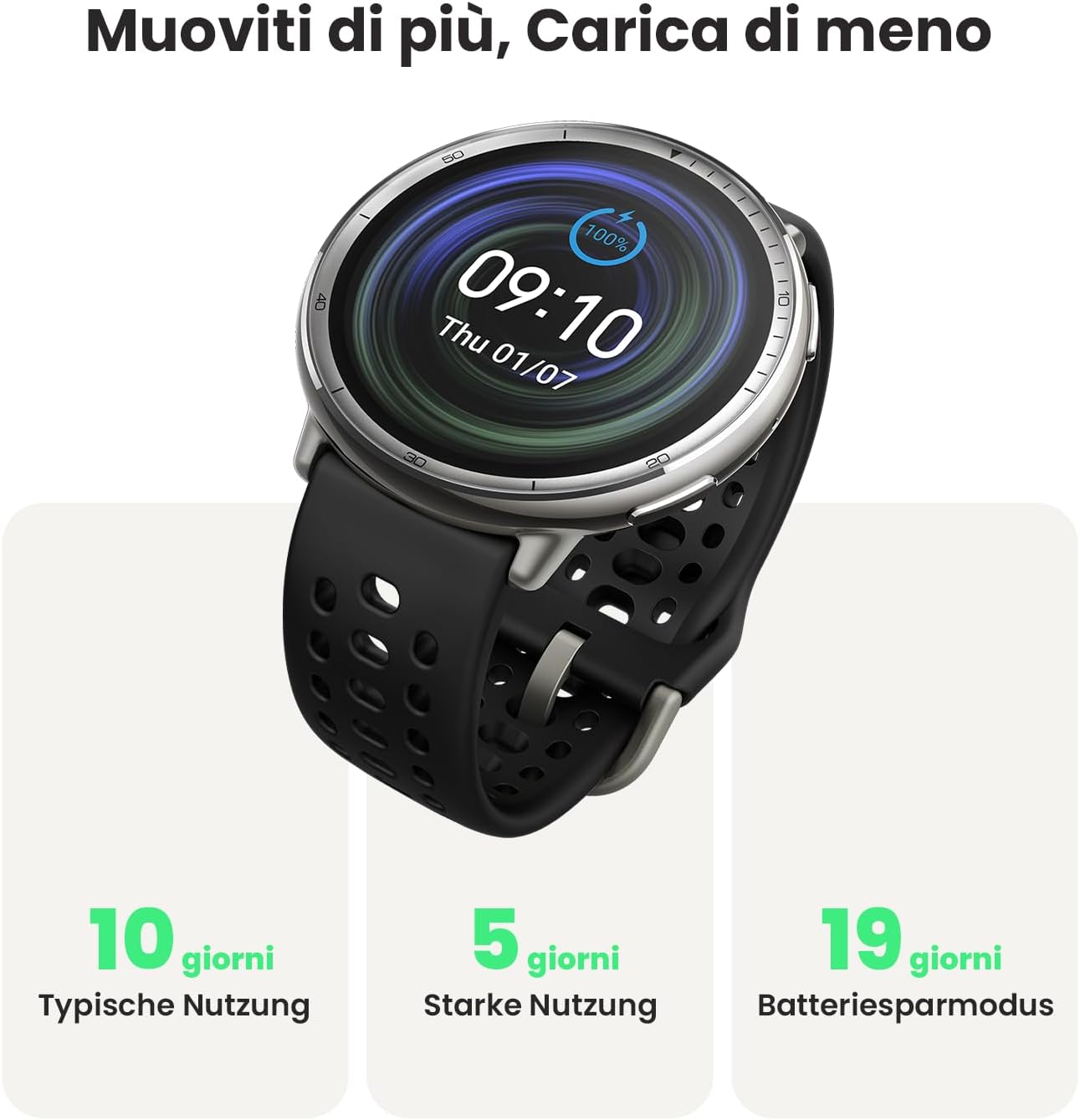 Con la certificazione 5 ATM, questo smartwatch è resistant all’acqua fino a 50 metri, rendendolo perfetto per il nuoto e altre attività acquatiche, senza preoccupazioni di danneggiarlo.