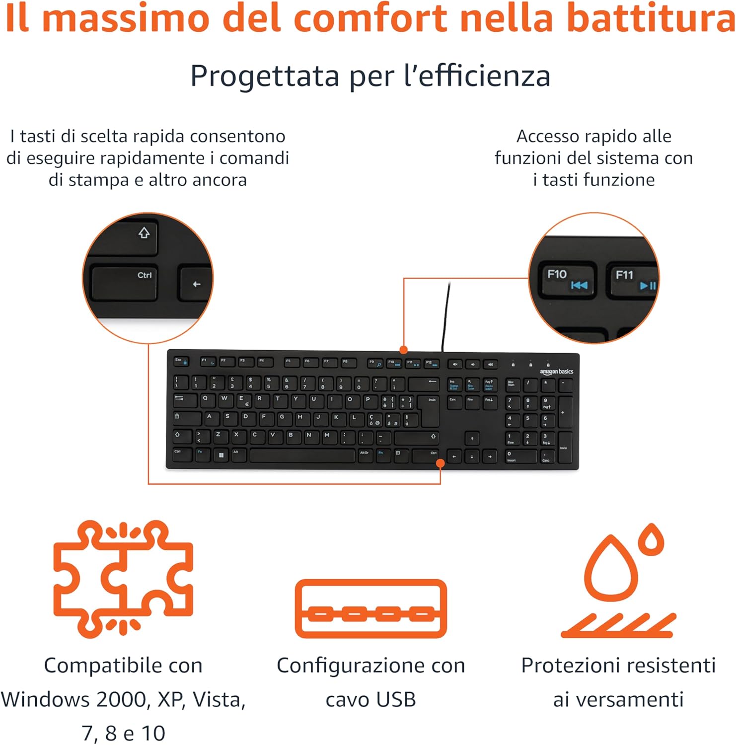 Amazon Basics Tastiera USB a basso profilo con layout IT, nero opaco