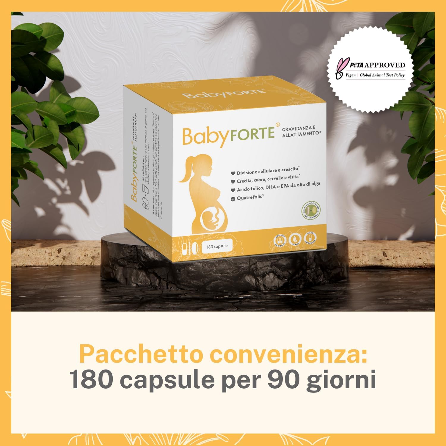 BabyFORTE® Vitamine Gravidanza Integratore | Vegano | 60 Capsule | acido folico + 17 Nutrienti – Omega 3 DHA EPA | Allattamento