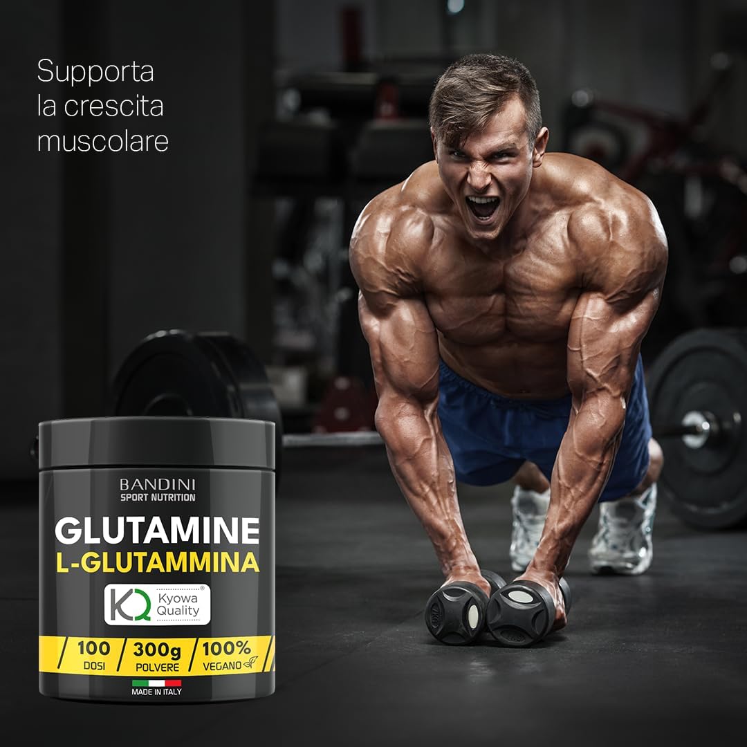 Bandini® L-Glutammina Kyowa® Quality Pura in Polvere – Aminoacido utile per Esercizi Fisici ad Alta Intensità – Rinforza la Massa Muscolare – Glutammina POWDER 100% Vegan – Confezione da 300g