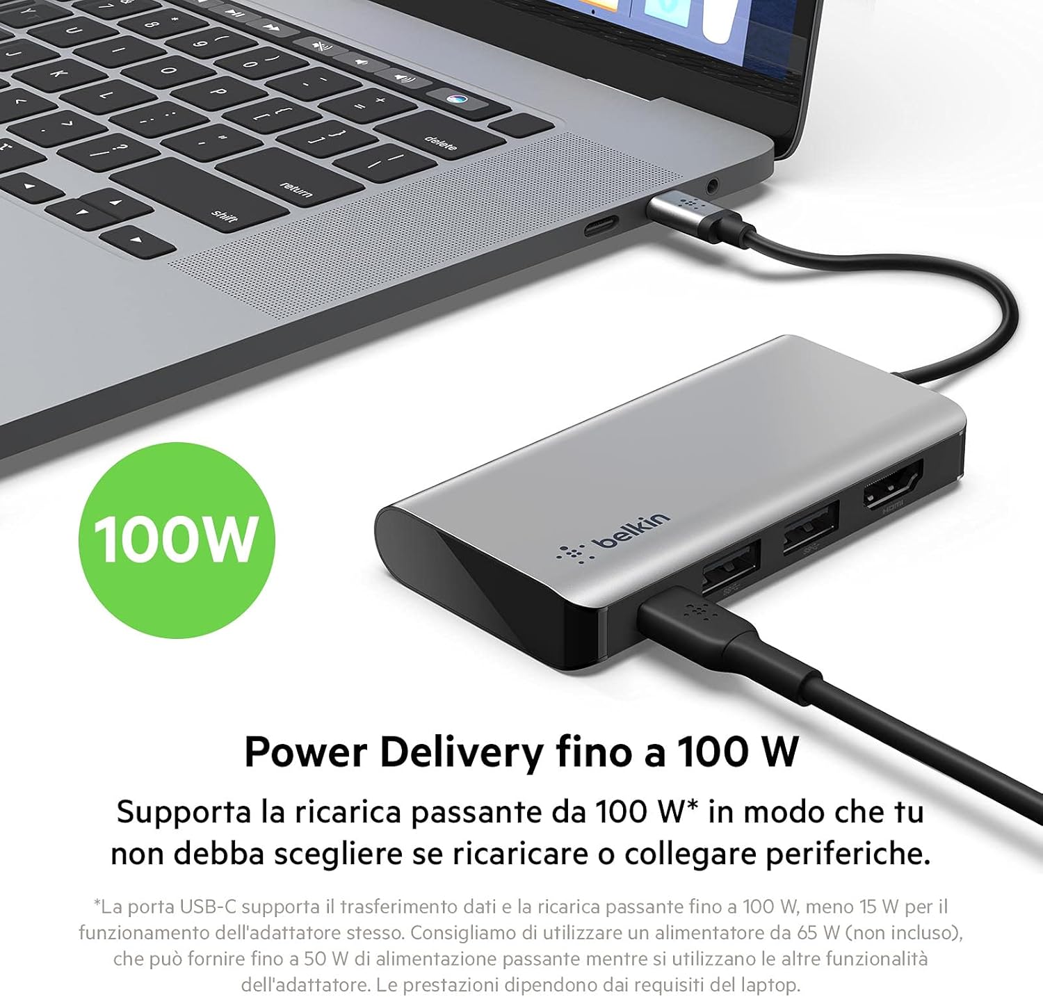 In mega sconto il prodotto Belkin Adattatore Multiporta 4 in 1 USB-C (HDMI 4K, Ricarica Passante PD da 100 W, 2 Porte USB-A) per MacBook Pro, Air, iPad Pro, XPS e Altri, ideale per chi cerca qualità e convenienza.