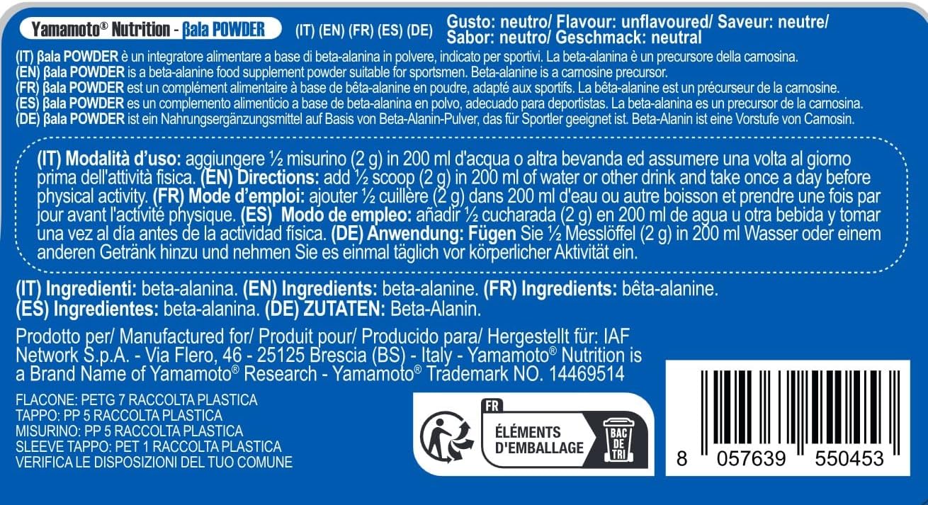 Ogni dose consigliata offre una quantità efficace di beta alanina, un aminoacido noto per il suo ruolo nella produzione di carnosina, che può contribuire a ritardare l’affaticamento muscolare e migliorare la resistenza. È consigliabile seguire le indicazioni sul dosaggio fornite, evitando di eccedere il limite raccomandato per massimizzare i benefici senza effetti collaterali indesiderati.
