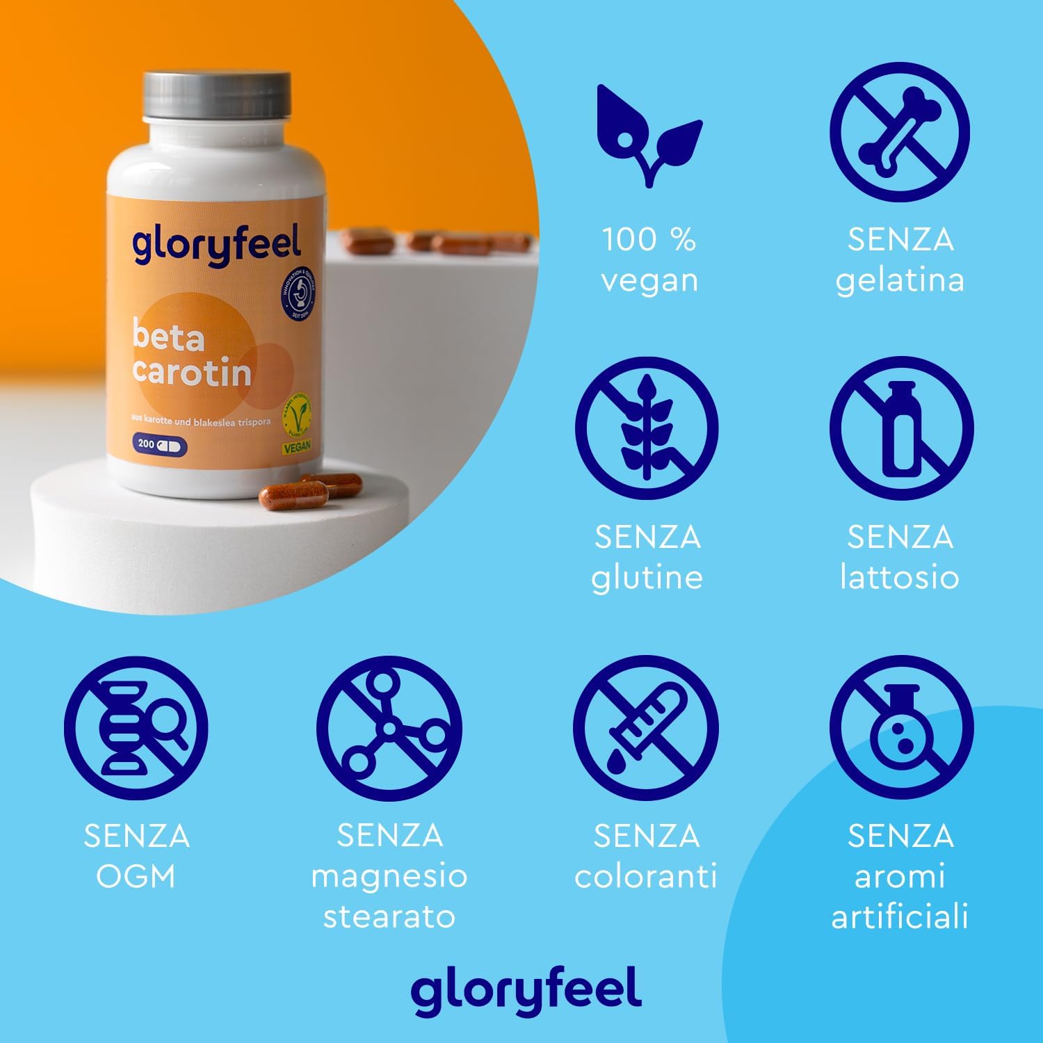 Betacarotene per Abbronzatura Forte, 200 Capsule, Beta Carotene Integratore Abbronzatura da Estratto di Carota, Attivatore Accelleratore Abbronzatura con Vitamina A pura 1169 µg, 100% Vegan