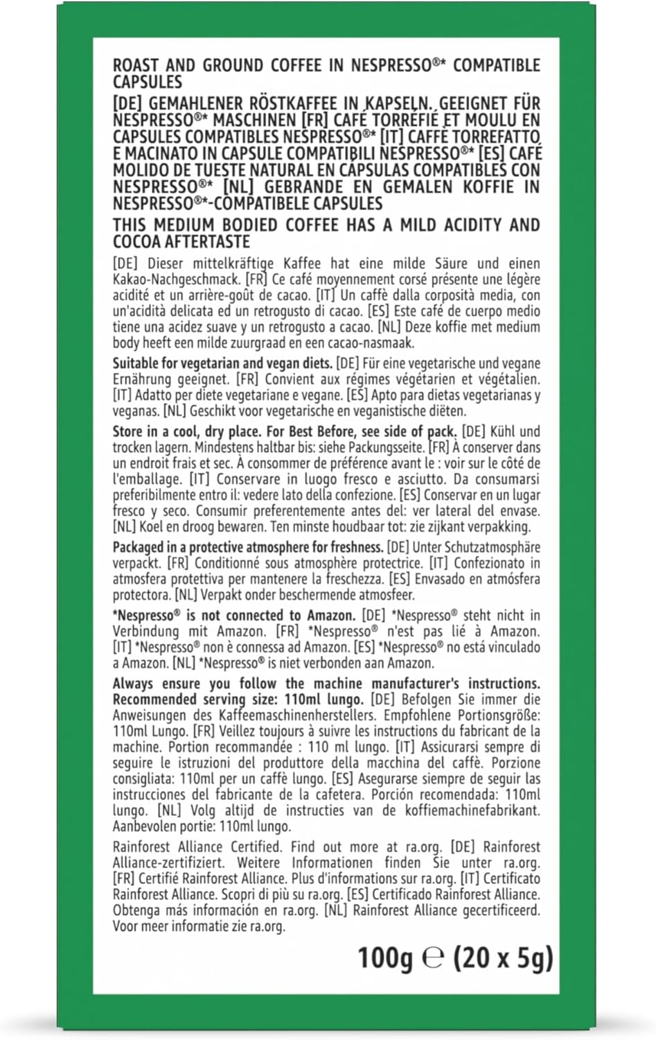 by Amazon Capsule in alluminio di caffè Lungo compatibili con Nespresso, tostatura media, 20 unità, Certificato Rainforest Alliance