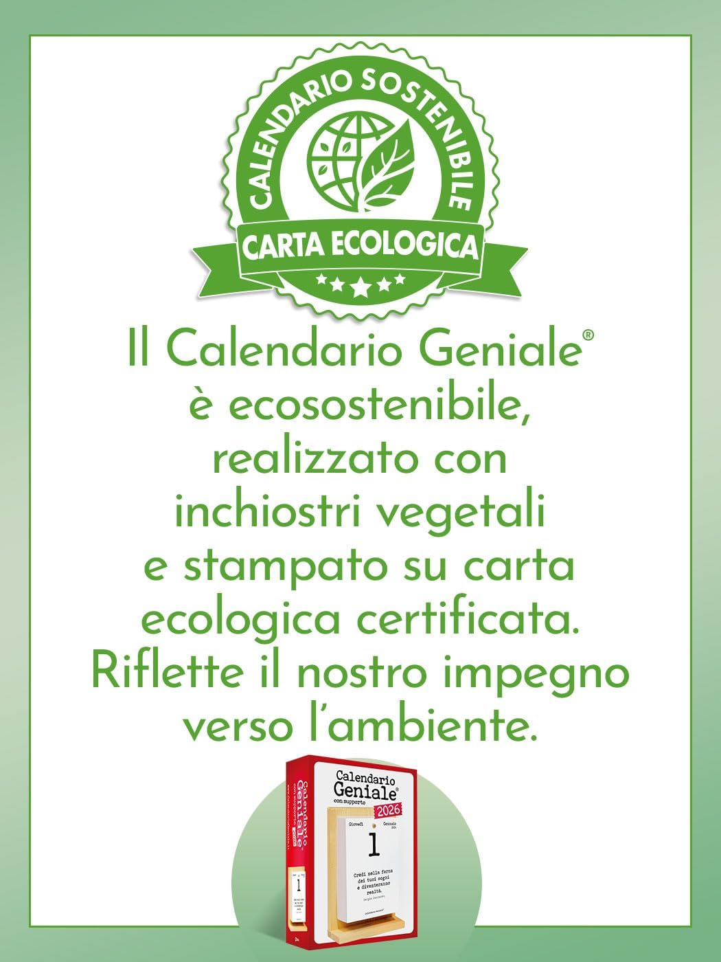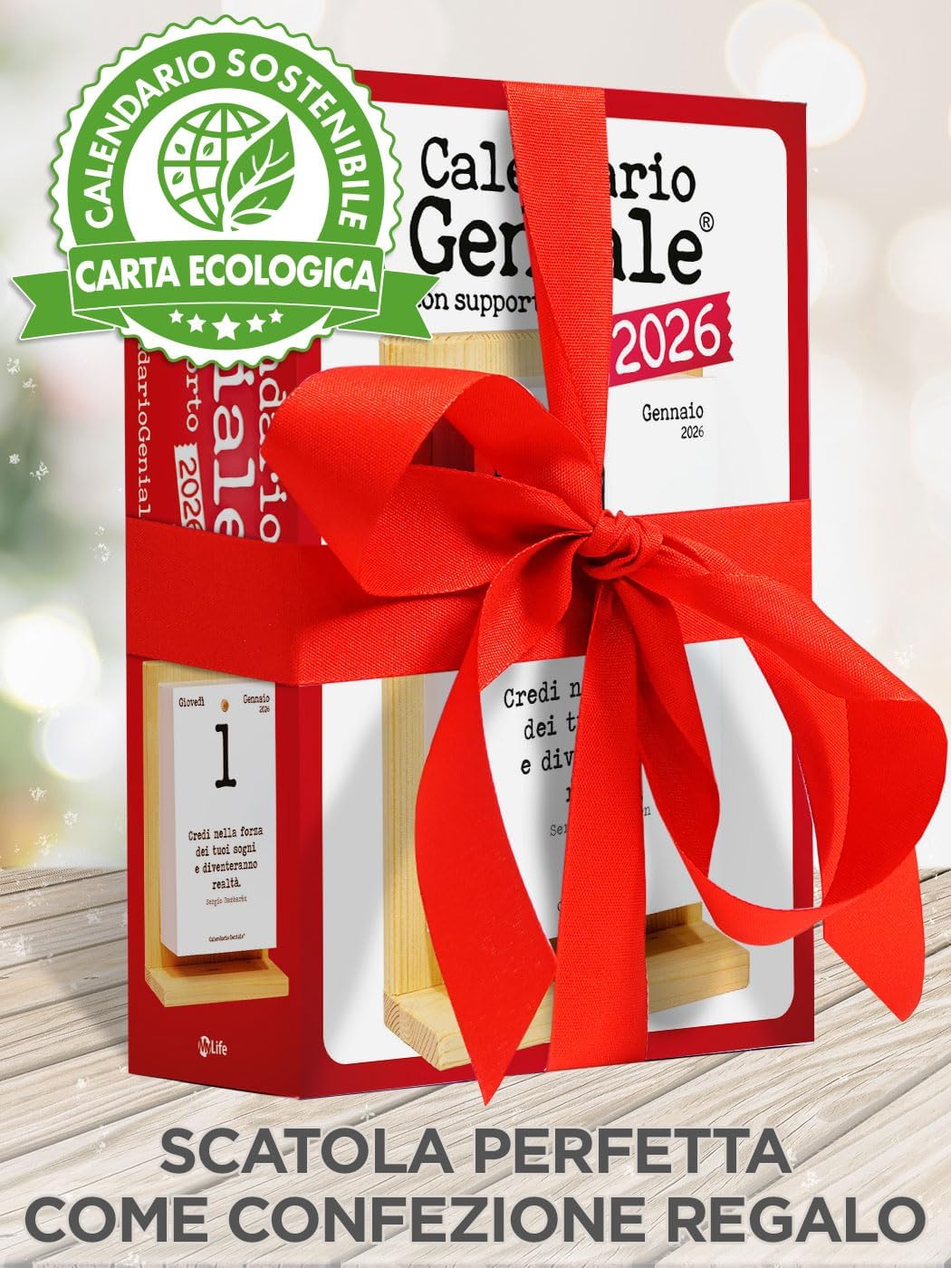 Calendario Geniale 2026. L’Originale Eco Sostenibile. Il Primo con Bonus digitali. Idea Regalo con Scatola. Supporto Legno di Abete Naturale. Leggi ogni giorno una frase e il pensiero Filosofico.