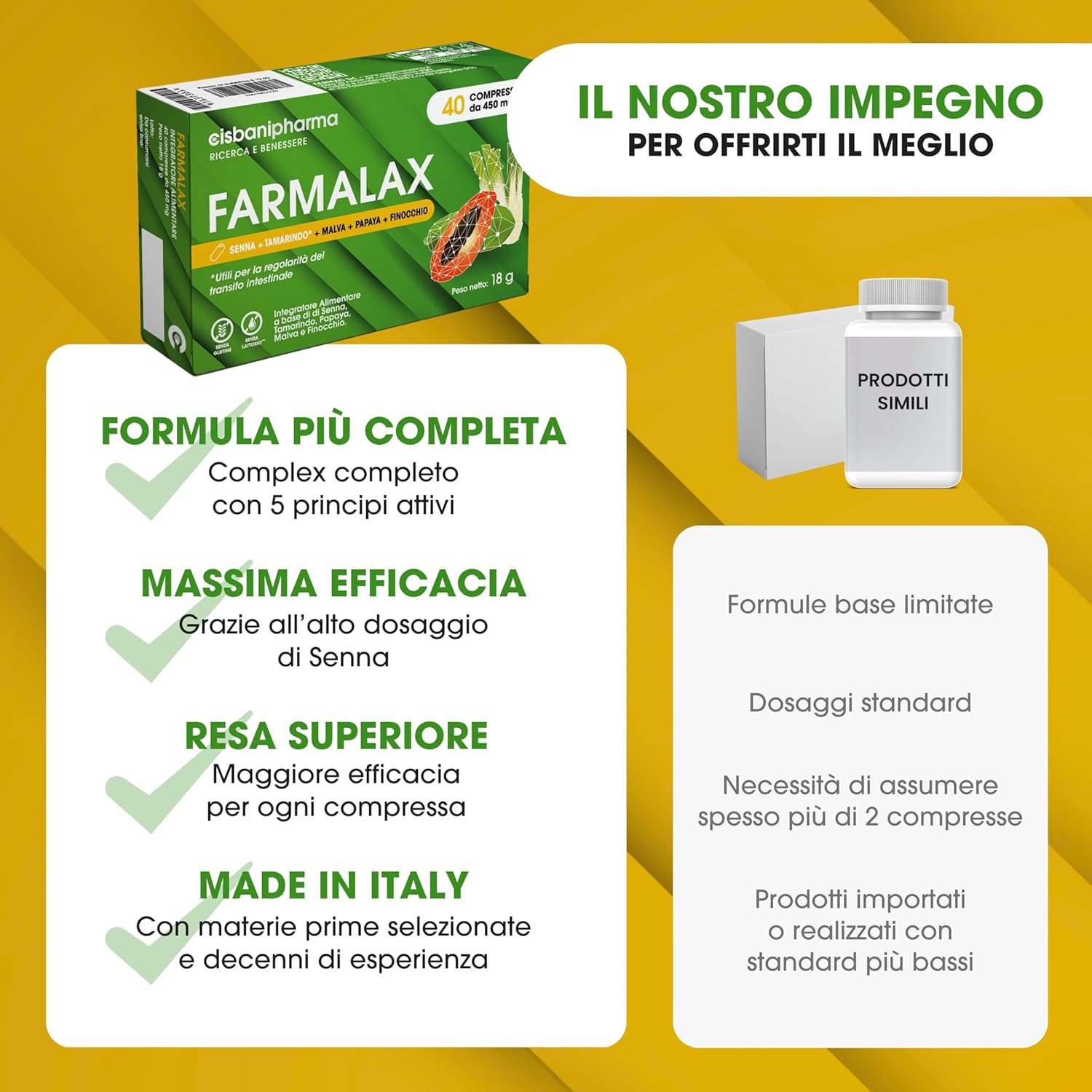 CISBANI PHARMA Farmalax Integratore Alimentare con Senna, Tamarindo e Malva per la Regolarità Intestinale, Papaya e Finocchio per Funzione Digestiva e Gonfiore Addominale – 40 compresse