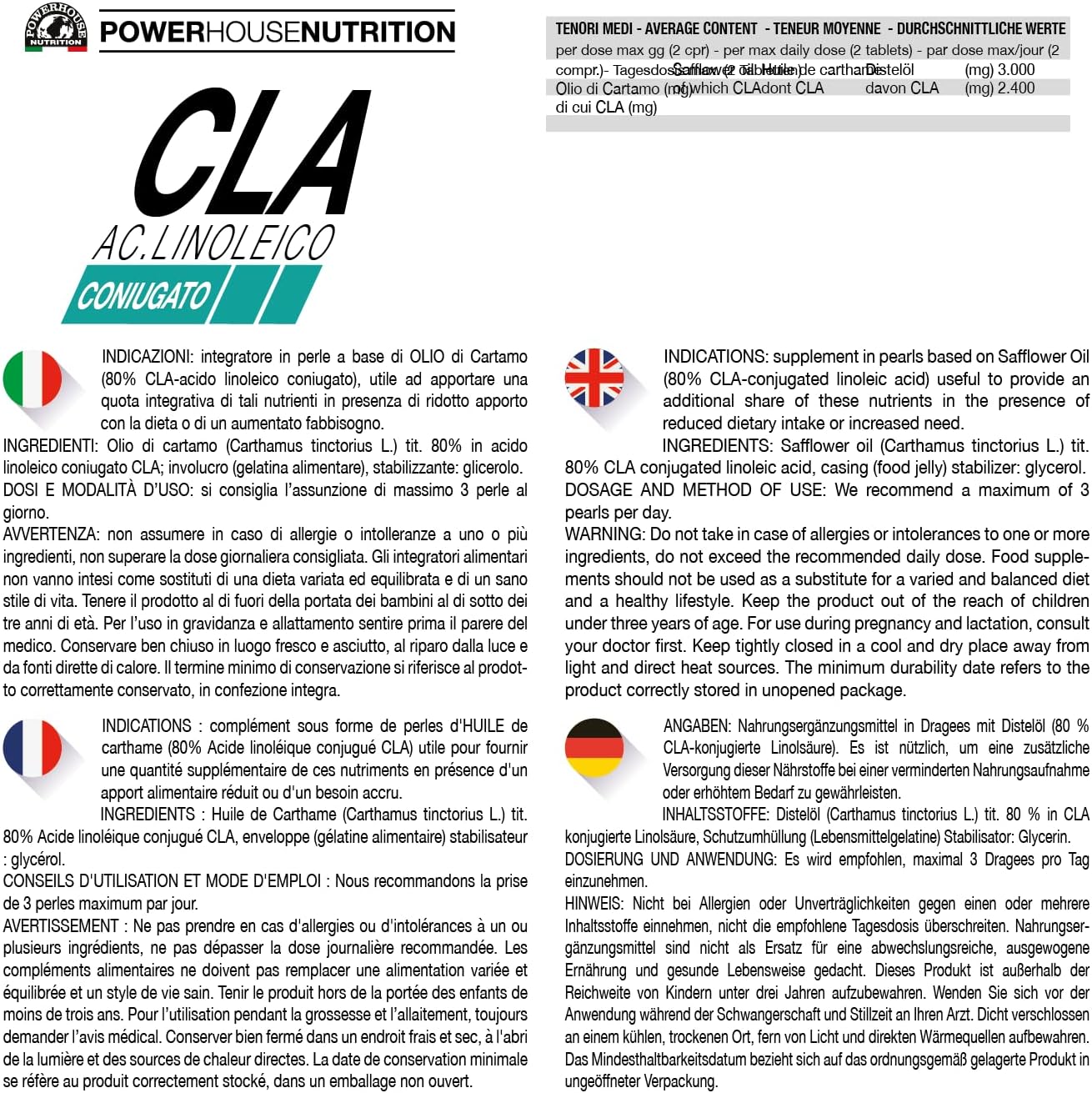 Il CLA (Acido Linoleico Coniugato) di Powerhouse Nutrition è un integratore alimentare Made in Italy, con formula a base di olio di cartamo, offerto in pratiche perle da 90. Questo prodotto è spesso utilizzato da chi ricerca supporto nella gestione del peso e nel miglioramento della composizione corporea.