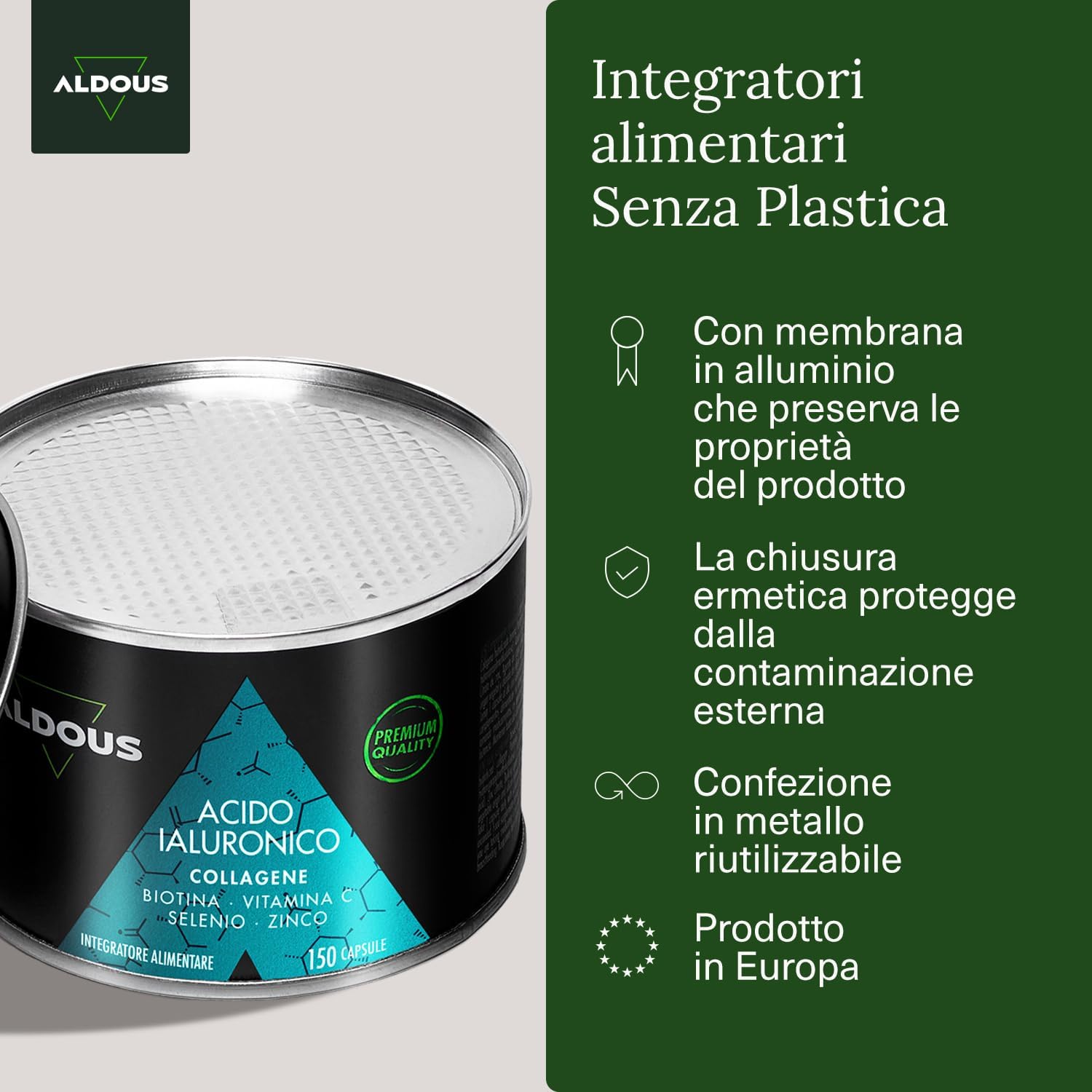 Esplora il prodotto Collagene e Acido Ialuronico 220 mg – 150 Capsule con Vitamina C, Biotina, Zinco e Selenio – Integratore Capelli, Pelle, Unghie – 800mg Collagene Idrolizzato – Articolazioni, Muscoli e Ossa – ALDOUS, ideale per chi cerca qualità e convenienza.