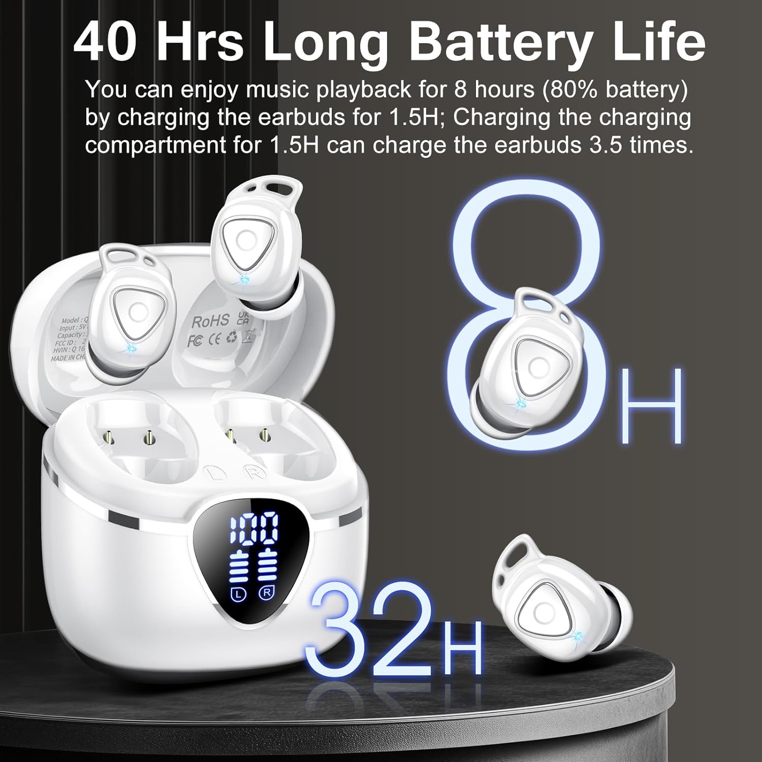 Cuffie Bluetooth, Auricolari Bluetooth 5.4 Wireless, 40 Ore Stereo HiFi Immersivo con 4 HD Mic, Mini Cuffiette Bluetooth IPX7 Impermeabili, Touch Control, Cuffie Senza Fili per iOS/Android, Bianco