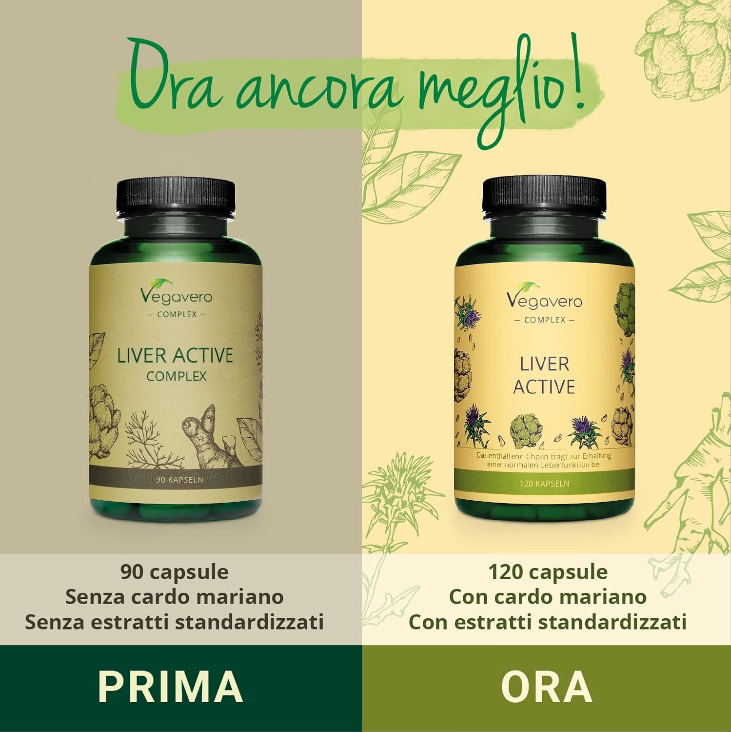 Detox FEGATO Vegavero® | Cardo Mariano, Carciofo, Tarassaco, Cicoria e Colina | Depurante + Disintossicante | Con Silimarina e Cinarina | 120 capsule | Vegan