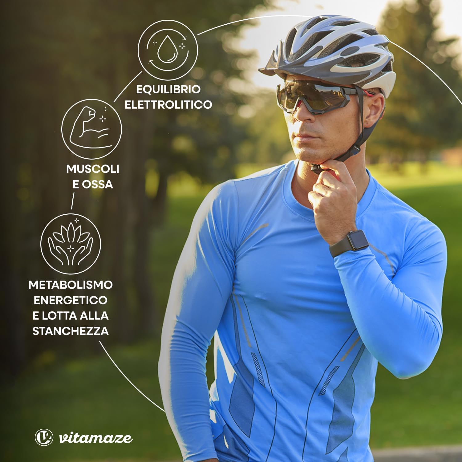 Elettroliti Integratore 1.000 mg per 6 mesi (1 al Giorno) con Sali Minerali Magnesio, Potassio, Calcio, Cloruro e Sodio per l’Equilibrio Elettrolitico Senza Zucchero. 180 Compresse. Vitamaze®