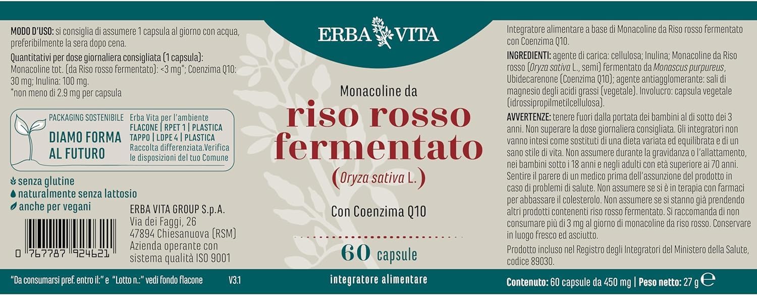 Recensione del prodotto: ERBA VITA Integratore Alimentare di Riso rosso fermentato – 60 Capsule
