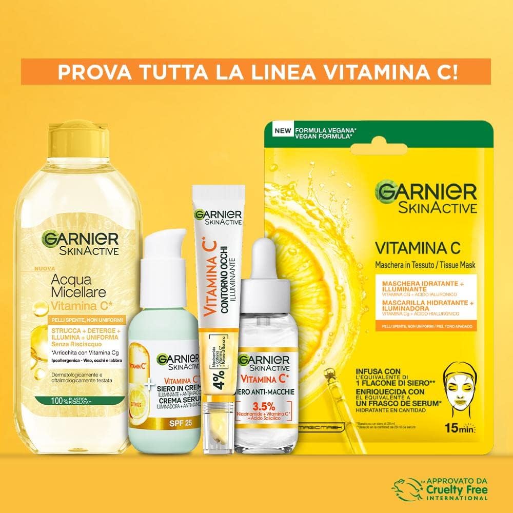 Garnier SkinActive Contorno Occhi Illuminante, Vitamina C, Per uno Sguardo Più Fresco e Riposato, Antirughe, 15 ml
