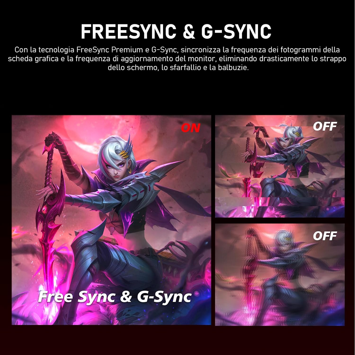 Con un refresh rate di 165Hz e un tempo di risposta di 1ms, il monitor si comporta bene durante le sessioni di gioco. Non ho riscontrato ghosting o motion blur, anche nei titoli più frenetici. La compatibilità con l’99% dello spazio colore sRGB garantisce colori vividi e accurati, migliorando l’esperienza visiva complessiva.