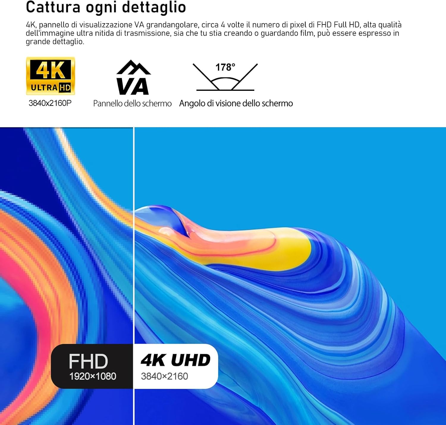 Il monitor Gawfolk da 32 pollici rappresenta un’interessante proposta per chi cerca un display ampio e ad alta risoluzione. Con una risoluzione di 3840×2160 pixel, questo monitor offre immagini straordinariamente nitide e dettagliate, rendendolo adatto sia per l’uso professionale che per il divertimento.