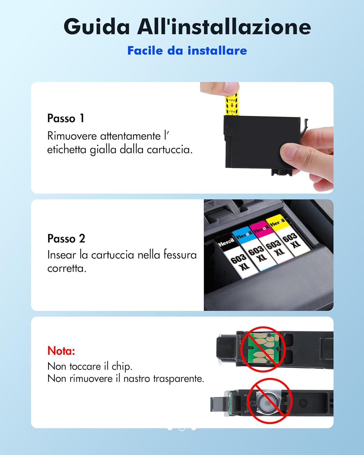 In sintesi, le cartucce Heroil 603XL sono una valida alternativa economica alle cartucce Epson originali. Offrono una qualità di stampa decente e una facilità di installazione notevole. Se hai un’uso domestico o di piccoli uffici e non hai esigenze di stampa professionale, consiglio di provarle. Tuttavia, per chi cerca massima precisione e durata, potrebbe essere meglio optare per le cartucce originali di Epson.