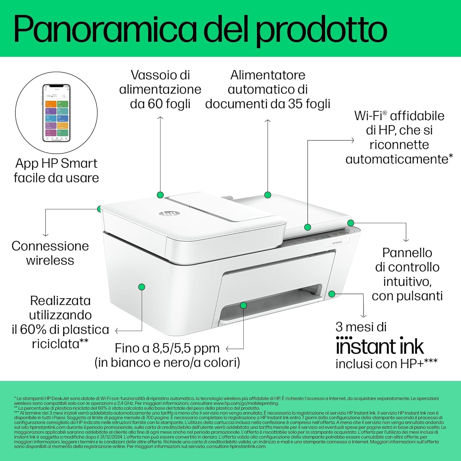 Esplora il prodotto HP DeskJet 4220e 588K43, Stampante Multifunzione a Getto d’Inchiostro A4 a Colori, Fronte e Retro Manuale, 8,5 ppm, Wi-Fi, ADF, Fax da mobile, 3 Mesi di Inchiostro Instant Ink Inclusi, Bianca, perfetto per chi cerca qualità e convenienza.