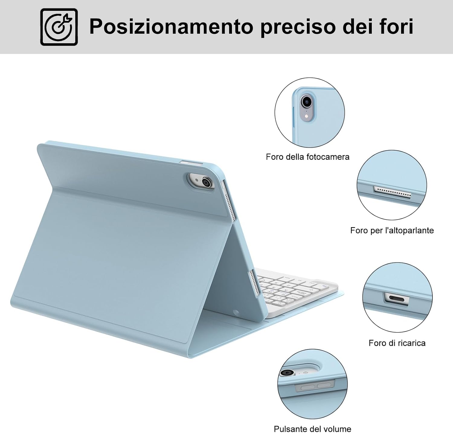 Scopri il prodotto IVEOPPE Cover iPad A16 11 Generazione con Tastiera/10 Generation (11/10.9 pollici, 2025/2022), Italiano QWERTY Layout, Tastiera Bluetooth Staccabile Compatibile con iPad 11/10, Blu cielo, adatto per chi cerca qualità e convenienza.