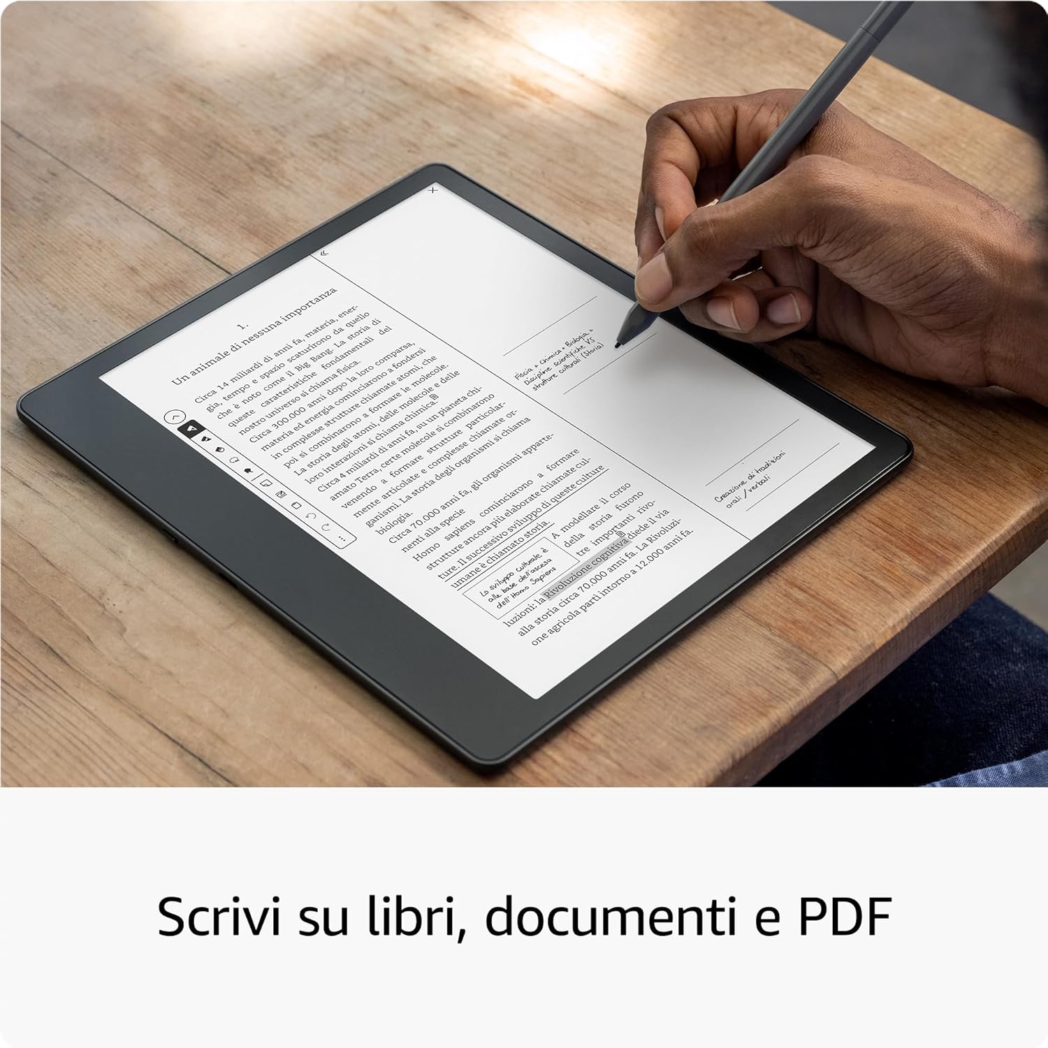 In conclusione, il Kindle Scribe è un dispositivo versatile che unisce lettura e scrittura in un’unica soluzione. È ideale per studenti, professionisti e lettori accaniti che desiderano annotare direttamente sui testi. Tuttavia, chi cerca un’esperienza di scrittura avanzata potrebbe trovare limitazioni nella penna base. Nel complesso, è un buon investimento per chi desidera un e-reader con funzionalità extra, ma potrebbe non soddisfare tutti i lettori più esigenti.