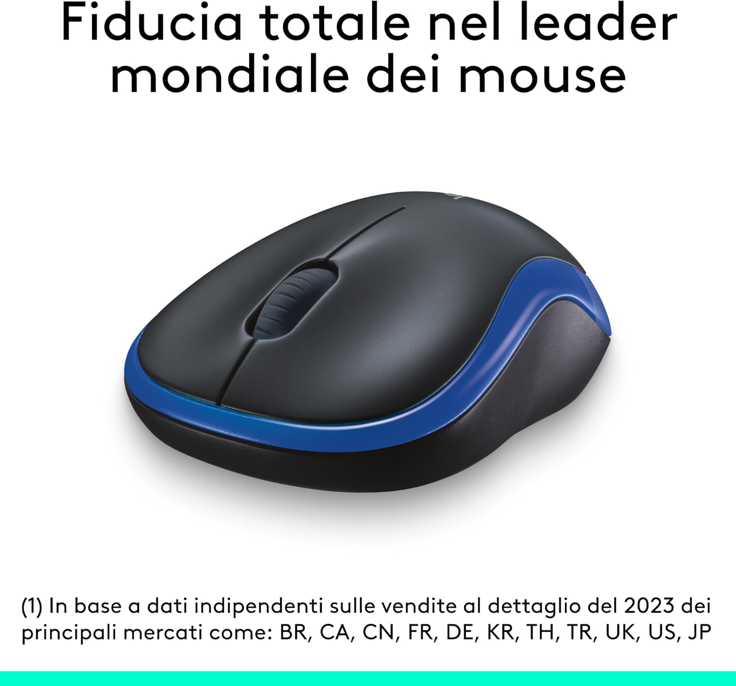 Logitech M185 Mouse Wireless, 2,4 GHz con Mini Ricevitore USB, Durata Batteria di 12 Mesi, Tracciamento Ottico 1000 DPI, Ambidestro, Compatibile con PC, Mac, Laptop – Blu