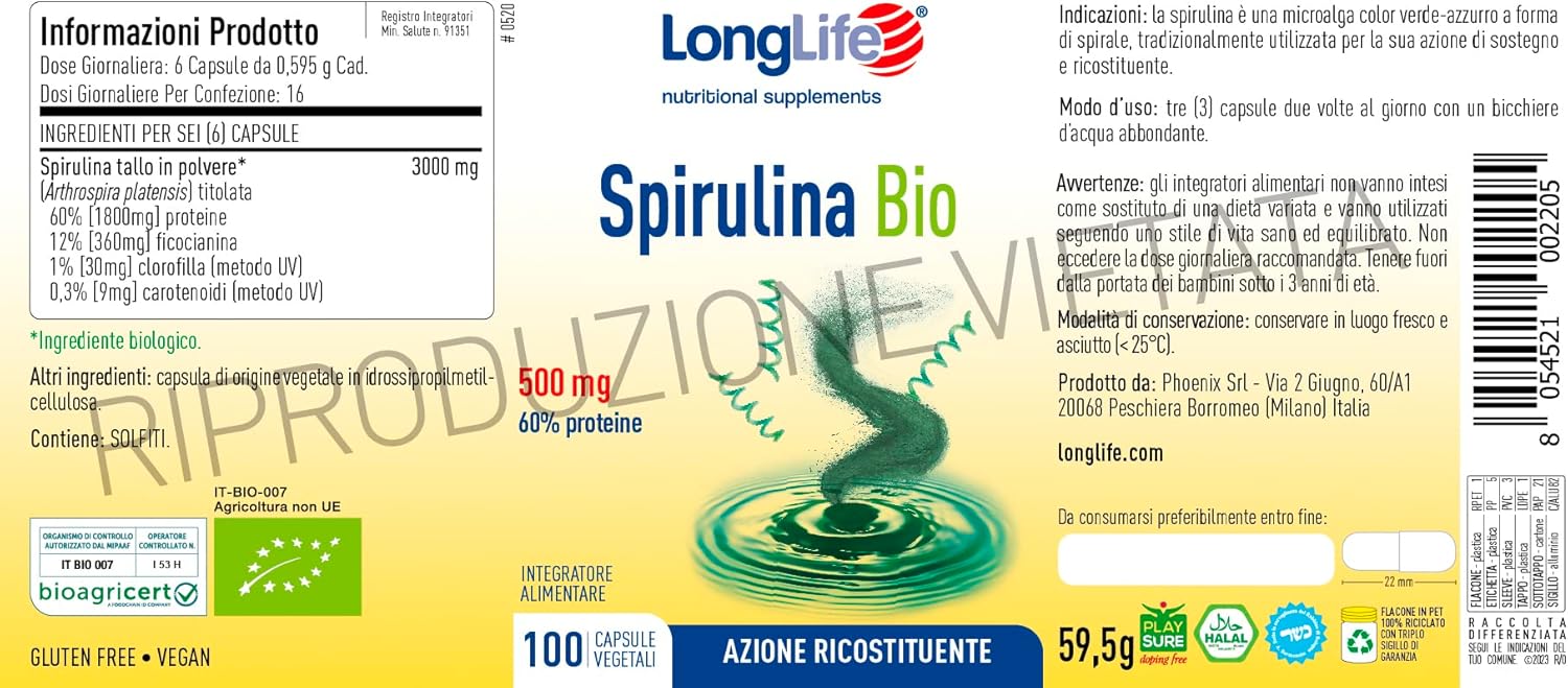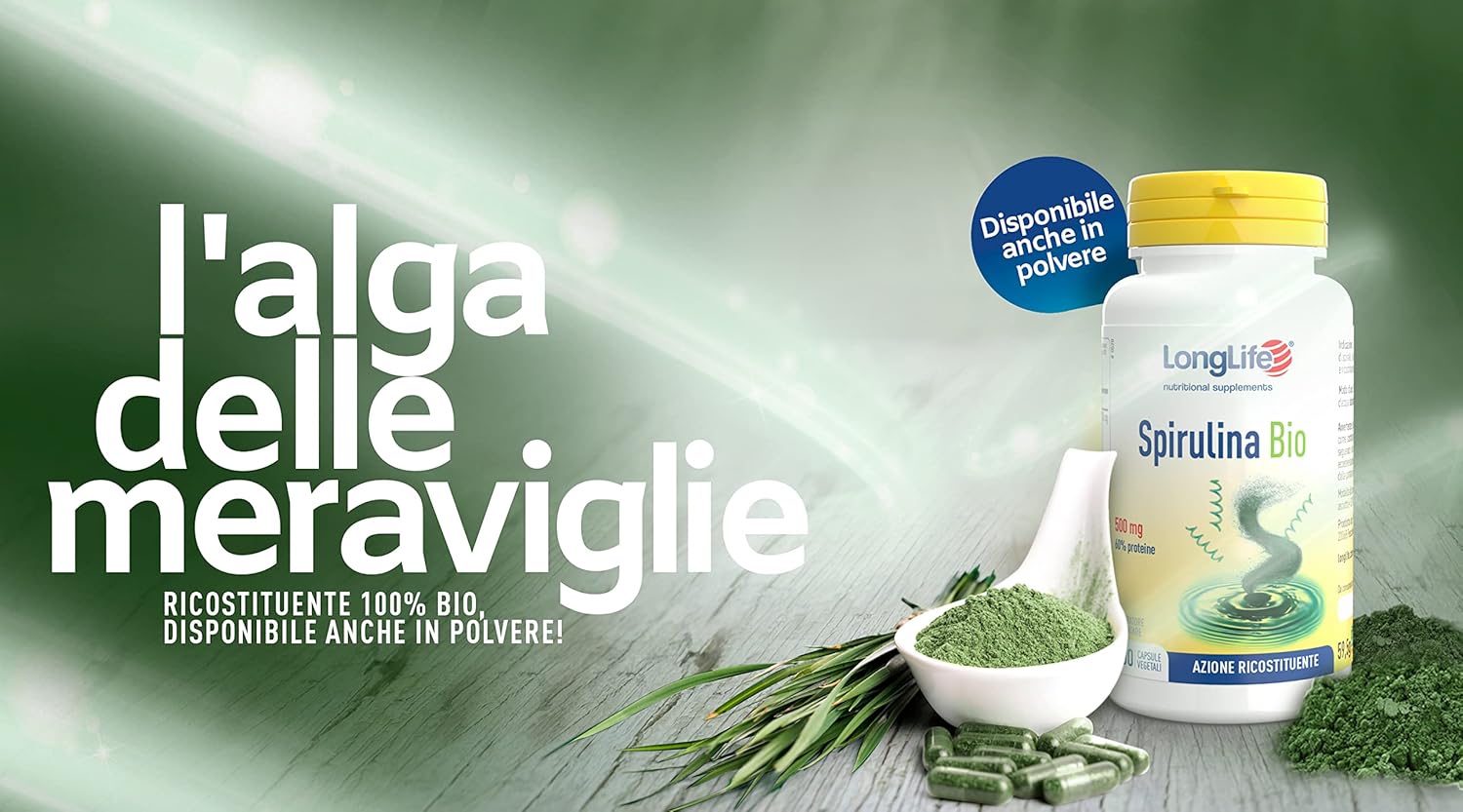 Dai un’occhiata a il prodotto LongLife® Spirulina Bio | Alga titolata in proteine, ficocianina, clorofilla e carotenoidi | BIO | Azione di sostegno e ricostituente | 100 capsule vegetali | Vegano e senza glutine, ideale per chi cerca qualità e convenienza.