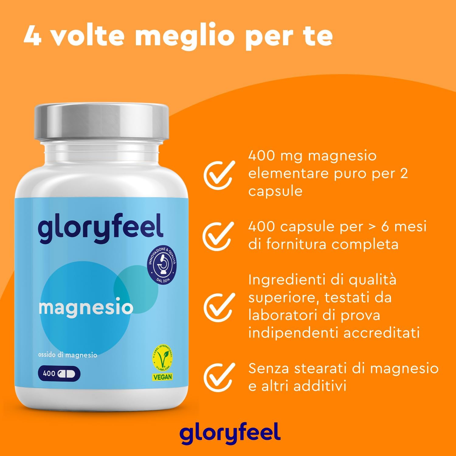 Dai un’occhiata a il prodotto Magnesio Integratore, 400 Capsule, Eletto PRODOTTO DELL’ANNO 2025, 6 Mesi di Fornitura, 100% Vegan, Magnesio Ossido ad Alto Assorbimento, Integratore Muscoli & Stanchezza, 400 mg Magnesio Elementare, ideale per chi cerca qualità e convenienza.