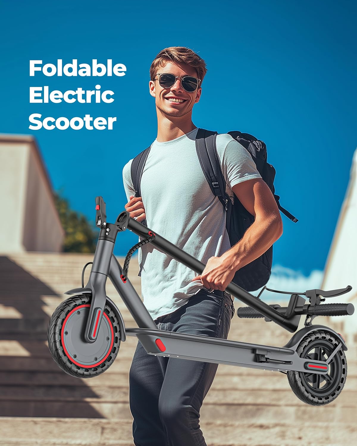 Il monopattino presenta un design moderno e funzionale, facile da piegare e trasportare. Il peso è relativamente leggero, il che lo rende comodo per gli spostamenti. I pneumatici solidi da 8.5″ offrono una buona stabilità, anche su superfici irregolari, riducendo il rischio di forature.
