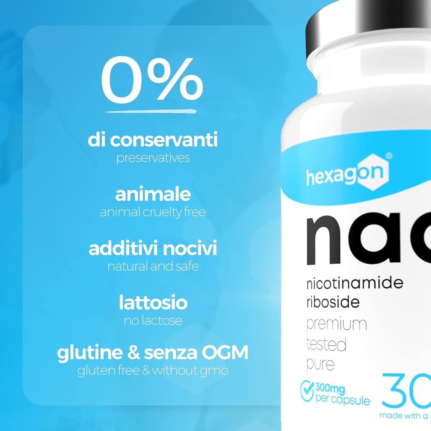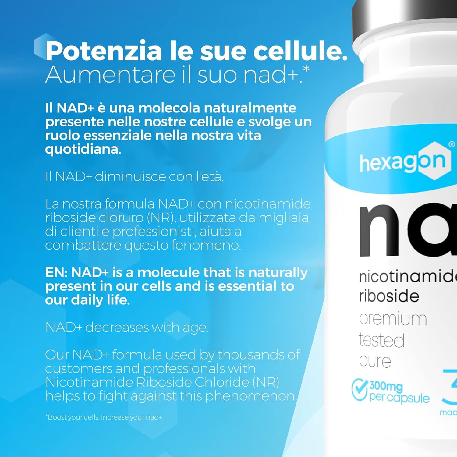 Il prodotto NAD+ Nicotinamide Riboside Chloride da 300 mg di Hexagon è un integratore che si propone di offrire benefici legati al supporto della salute cellulare e alla lotta contro l’invecchiamento. Ecco una recensione dettagliata e onesta basata su vari aspetti del prodotto.