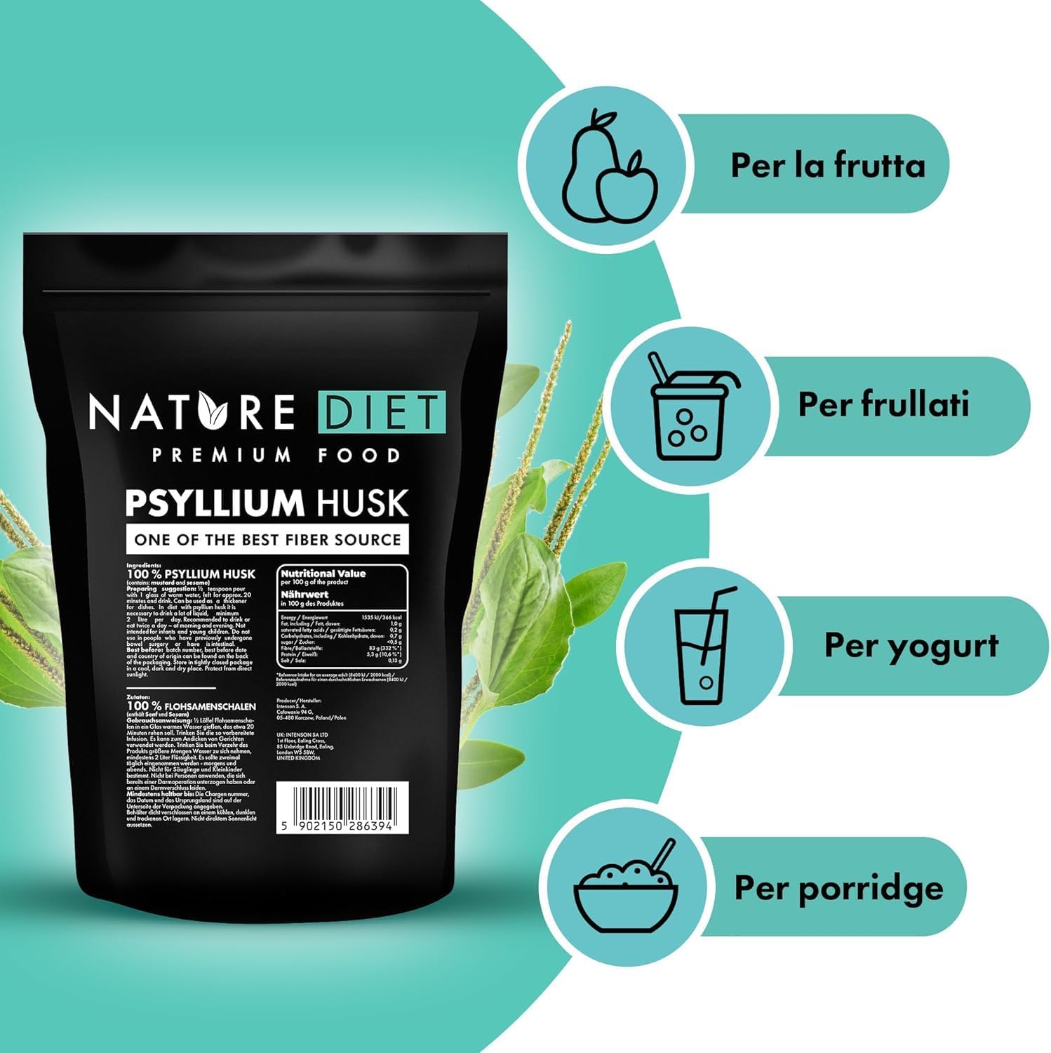 Le Bucce di Psillio Nature Diet sono un ottimo integratore per chi desidera aumentare l’apporto di fibre nella propria dieta, soprattutto per chi segue regimi alimentari specifici come keto o low-carb. Con la loro versatilità e benefici, possono essere un’aggiunta preziosa alla routine alimentare. Tuttavia, è importante usarle con moderazione e prestare attenzione a come il proprio corpo reagisce. Consigliate a chi cerca di migliorare la propria salute gastrointestinale e a chi ama sperimentare in cucina!