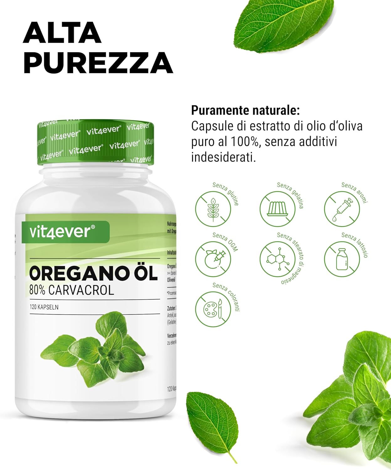L’Olio di Origano di questa recensione offre una formula altamente concentrata, con un contenuto di 80% di Carvacrol, il composto attivo noto per le sue proprietà antimicrobiche e antinfiammatorie. Viene estratto da Origanum vulgare proveniente dalla Francia, promettendo qualità e purezza elevate.