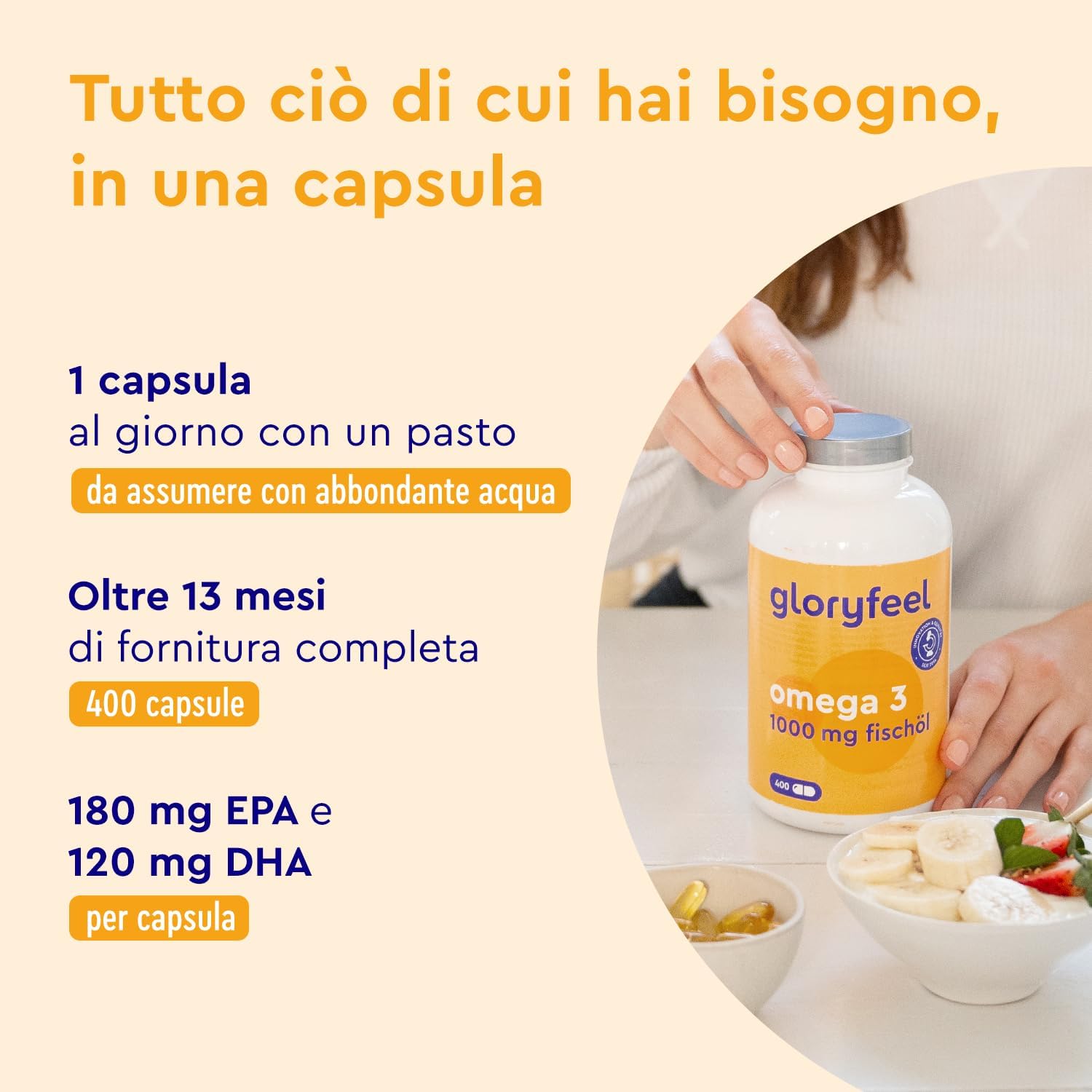 In mega sconto il prodotto Omega 3 Olio di Pesce 400 Capsule Eletto PRODOTTO DELL’ANNO 2025 (Maxi Scorta 13 Mesi), Softgel Omega-3, 1000mg Alto Dosaggio, Vista, Cuore, Cervello, 180mg EPA & 120mg DHA, Integratore Fish Oil, adatto per chi cerca qualità e convenienza.