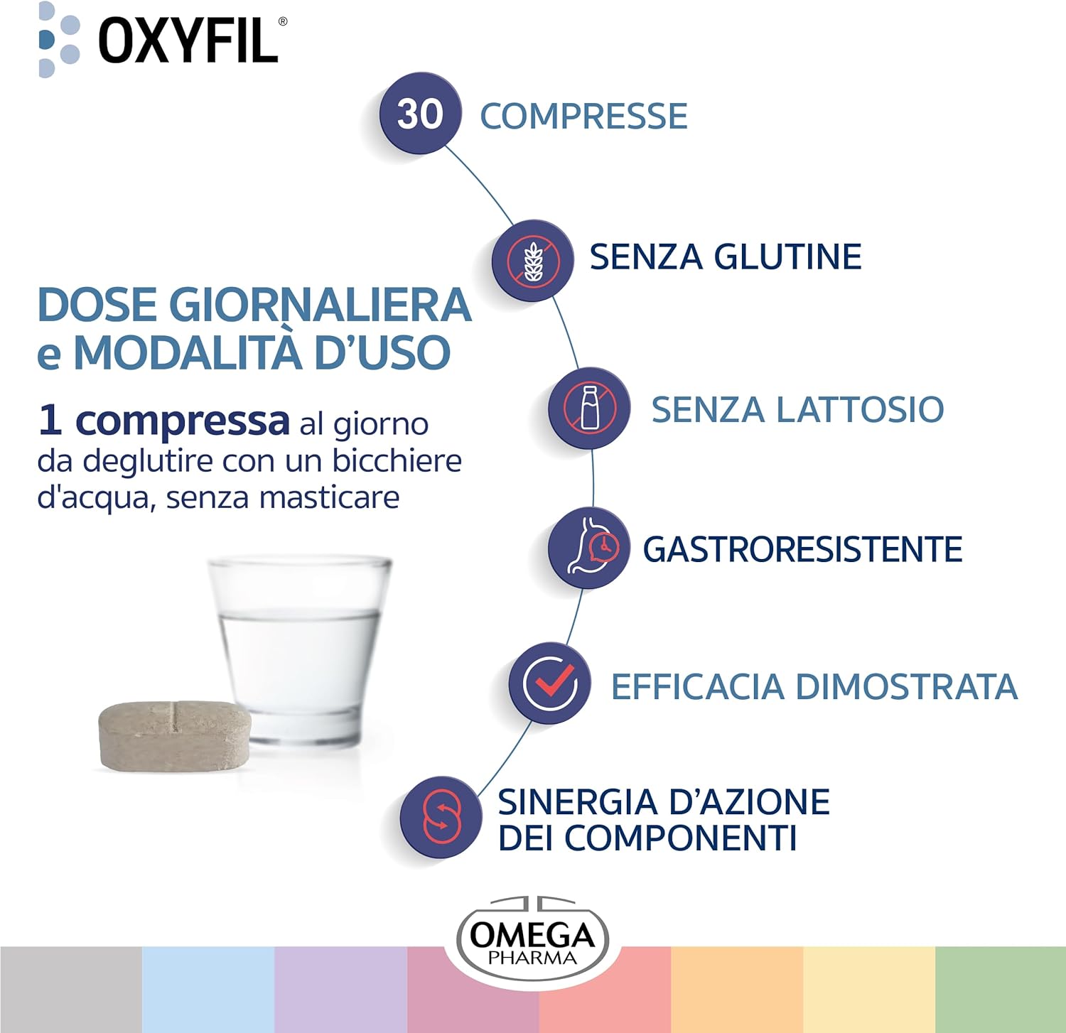 Omega Pharma – Oxyfil – Favorisce la funzionalità della Prostata, delle Vie Urinarie e del Microcircolo locale. Azione Antiossidante – 30 Compresse
