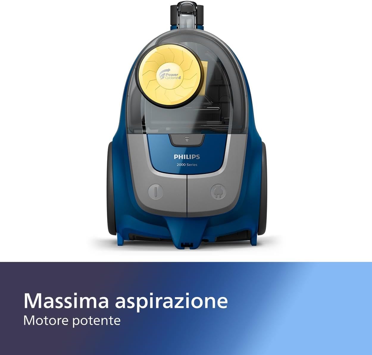 Dai un’occhiata a il prodotto Philips Aspirapolvere Serie 2000, Senza Sacco, 850W, PowerCyclone 4, Filtro Super Clean Air, Design Compatto, Capacità 1,3L, Blu (XB2125/09), ideale per chi cerca qualità e convenienza.