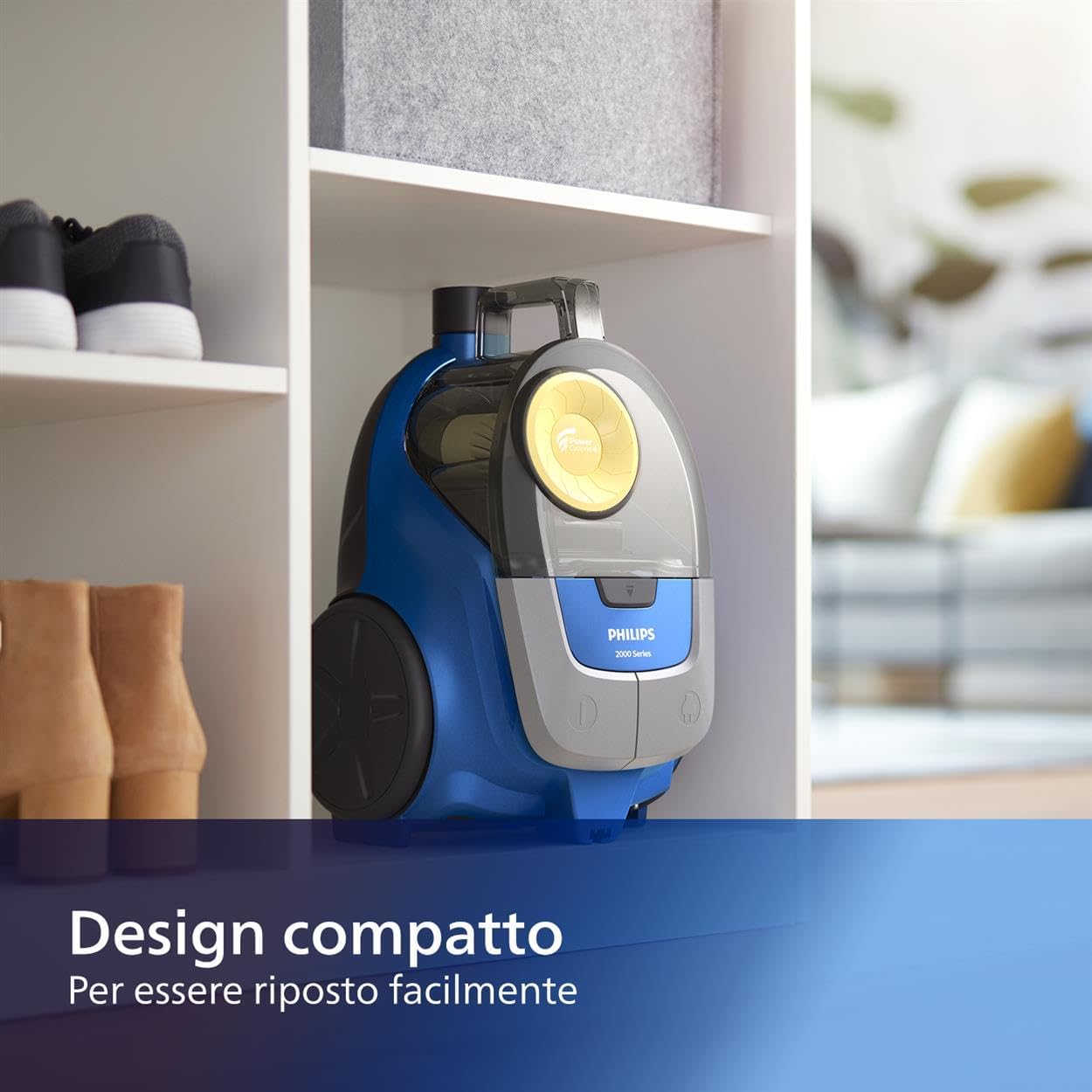 Philips Aspirapolvere Serie 2000, Senza Sacco, 850W, PowerCyclone 4, Filtro Super Clean Air, Design Compatto, Capacità 1,3L, Blu (XB2125/09)