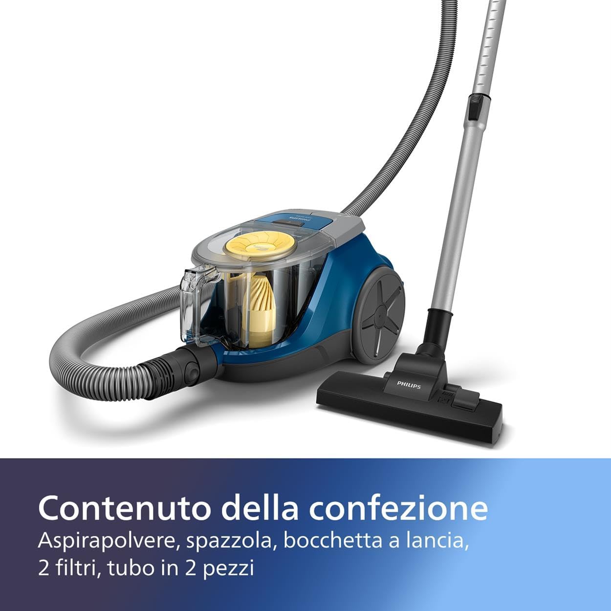 Dai un’occhiata a il prodotto Philips Aspirapolvere Serie 2000, Senza Sacco, 850W, PowerCyclone 4, Filtro Super Clean Air, Design Compatto, Capacità 1,3L, Blu (XB2125/09), ideale per chi cerca qualità e convenienza.