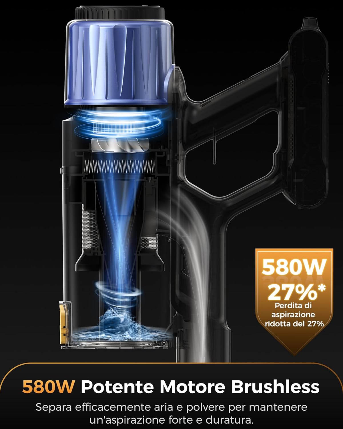 Il Proscenic P15 è un aspirapolvere senza fili che si distingue per la sua potenza e versatilità, rendendolo un’ottima scelta per chi cerca un dispositivo efficace e pratico per la pulizia della casa. Con una potenza di 580W e una capacità di aspirazione di 55Kpa, può affrontare senza problemi diverse superfici, dai pavimenti duri ai tappeti.