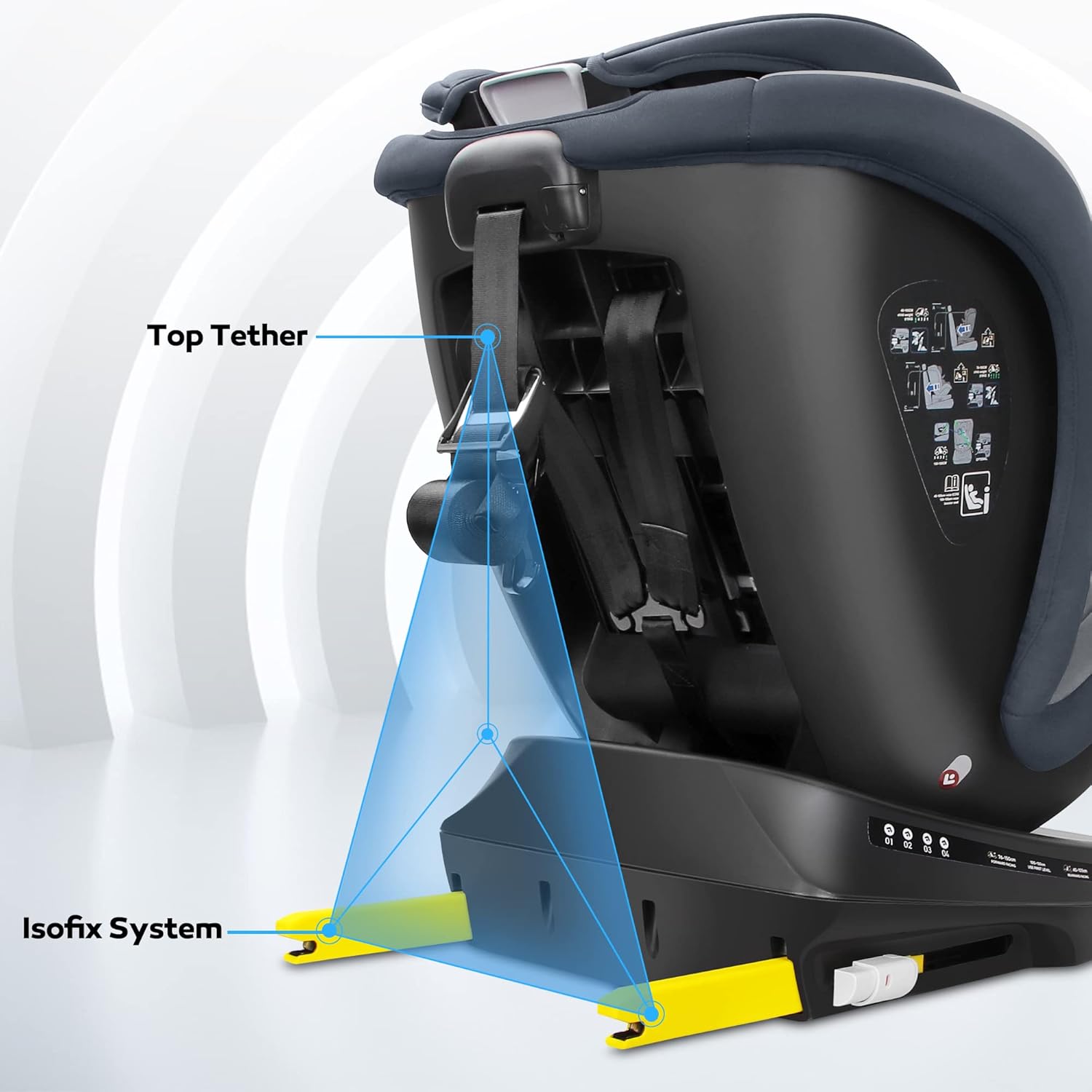 Il design in grigio è moderno e si integra bene con qualsiasi interni auto. Il seggiolino è ben imbottito e offre un buon supporto per il corpo del bambino, rendendolo confortevole durante i viaggi lunghi. La possibilità di ruotare a 360 gradi è un grande vantaggio, poiché facilita l’ingresso e l’uscita del bambino, rendendo le operazioni quotidiane davvero semplici.