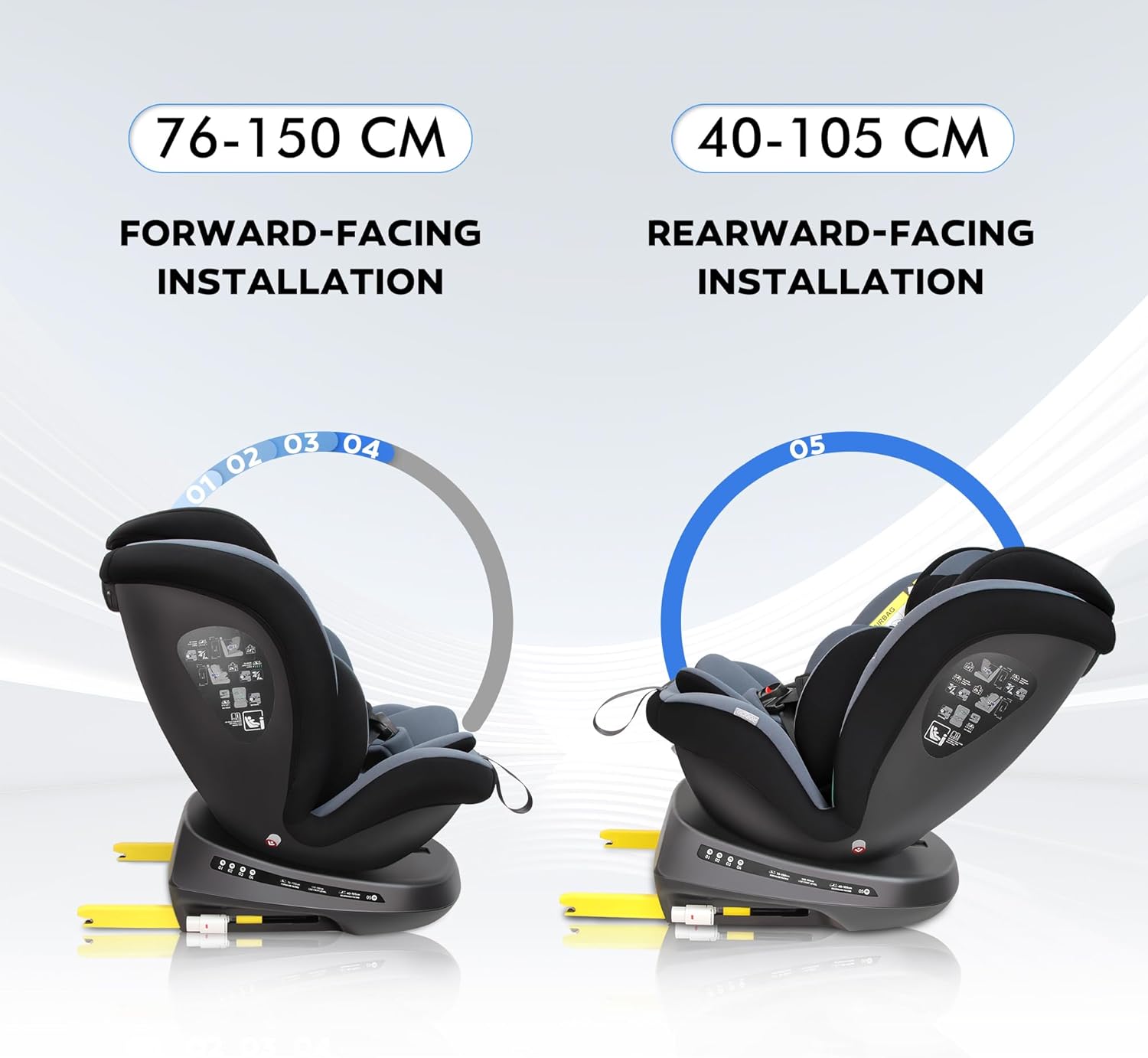 Girevole a 360 gradi: La funzione girevole è estremamente pratica, permettendo di posizionare il bambino nel seggiolino senza sforzi eccessivi. Ideale per i genitori che spesso devono sollevare il bambino.