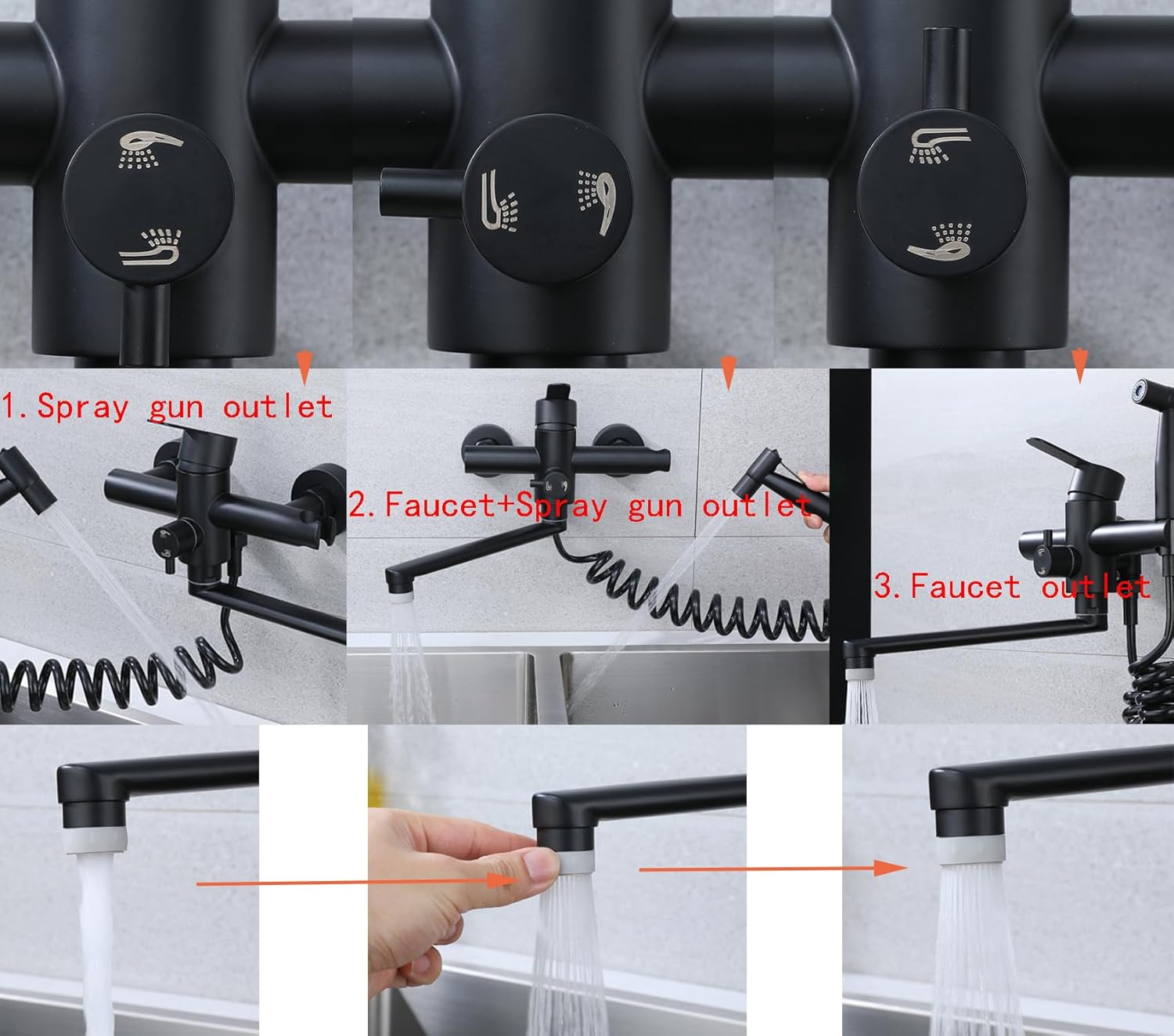 Scopri il prodotto Rubinetto da cucina, montaggio a parete, da cucina con pistola a spruzzo, girevole a 360°, tubo girevole da 23 cm, caldo e freddo, 4 modalità di funzionamento, acciaio inox 304, nero, adatto per chi cerca qualità e convenienza.