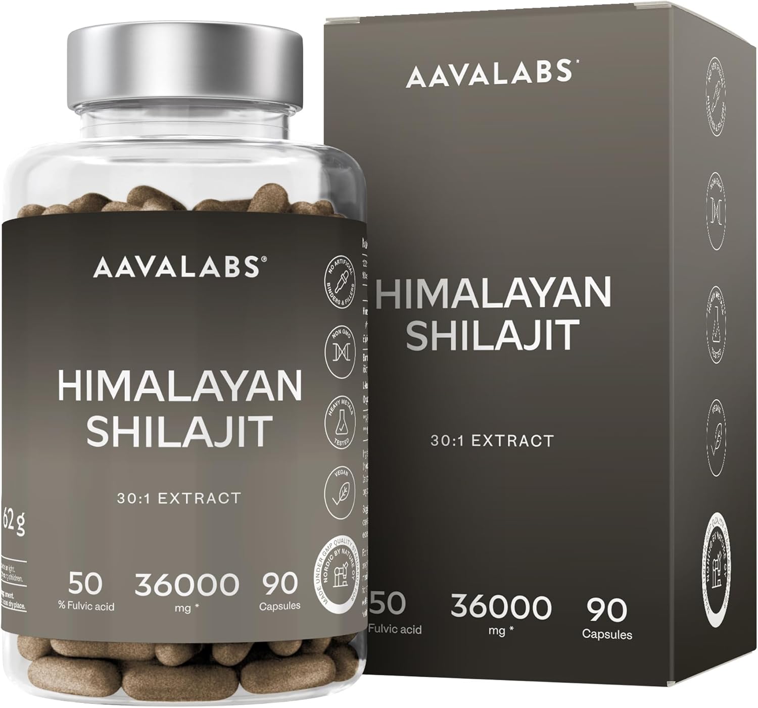 Shilajit Himalayano Puro Capsule 36000mg Estratto 30:1 Standardizzato 50% Acido Fulvico – Mumijo Shilajit Puro Alta Qualità – Pure Shilajit Integratore Energia Fisica e Mentale, Immunità – 90 Capsule