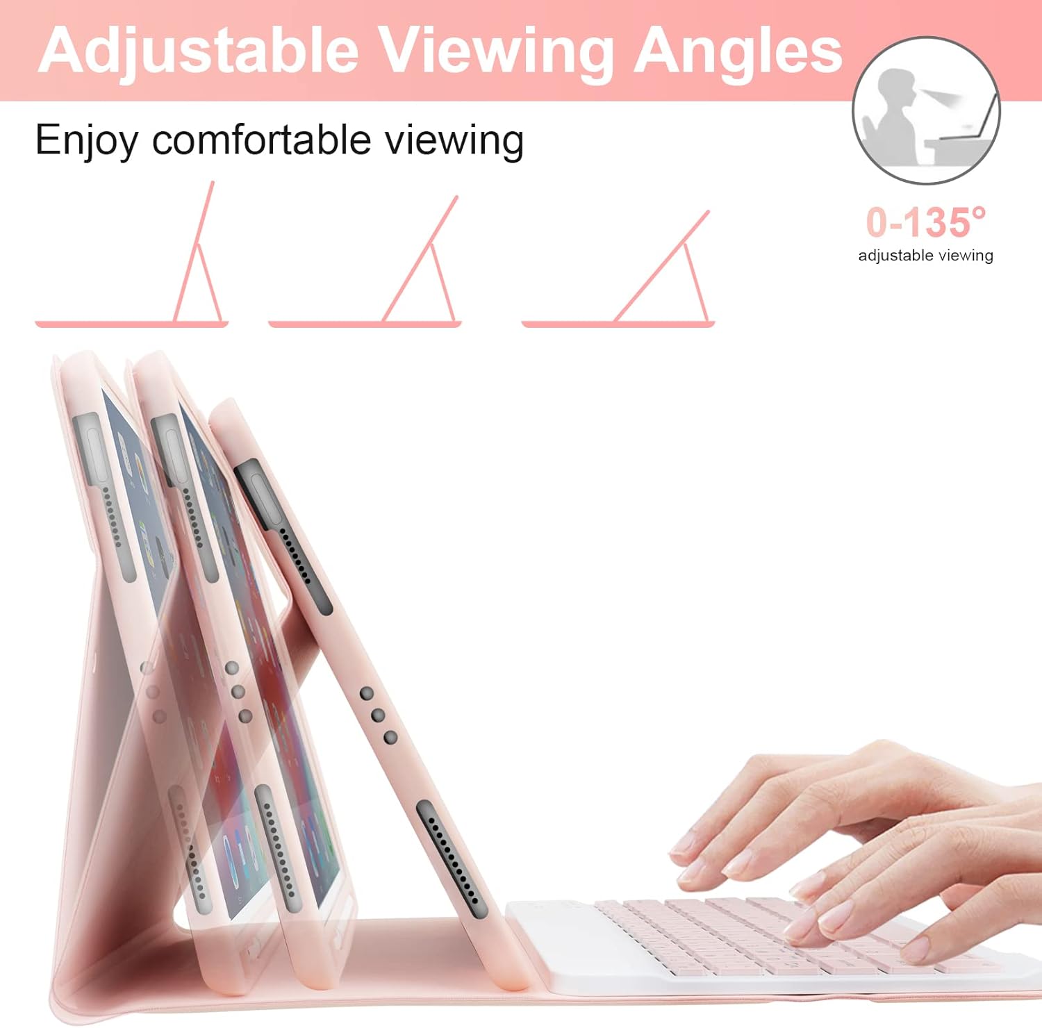 La custodia è disponibile in un delicato colore rosa, che la rende visivamente accattivante. Il materiale è resistente ma leggero, offrendo una buona protezione per l’iPad senza aggiungere peso eccessivo. La finitura è piacevole al tatto e non scivolosa.