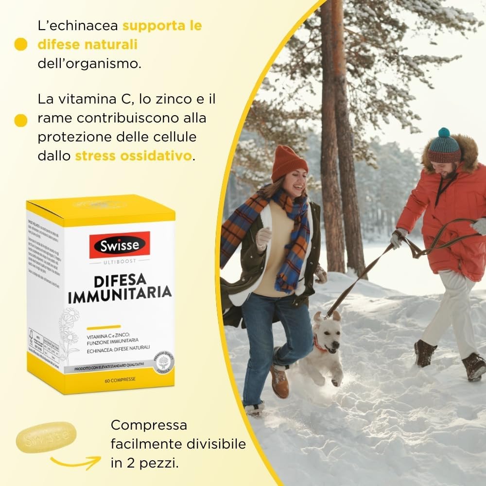 Dai un’occhiata a il prodotto SWISSE Difesa Immunitaria – Integratore Difese Immunitarie con Vitamina C Magnesio Zinco ed Echinacea, Integratori Stanchezza e Affaticamento, Formulazione Multinutriente, 60 Compresse, Made in Italy, perfetto per chi cerca qualità e convenienza.