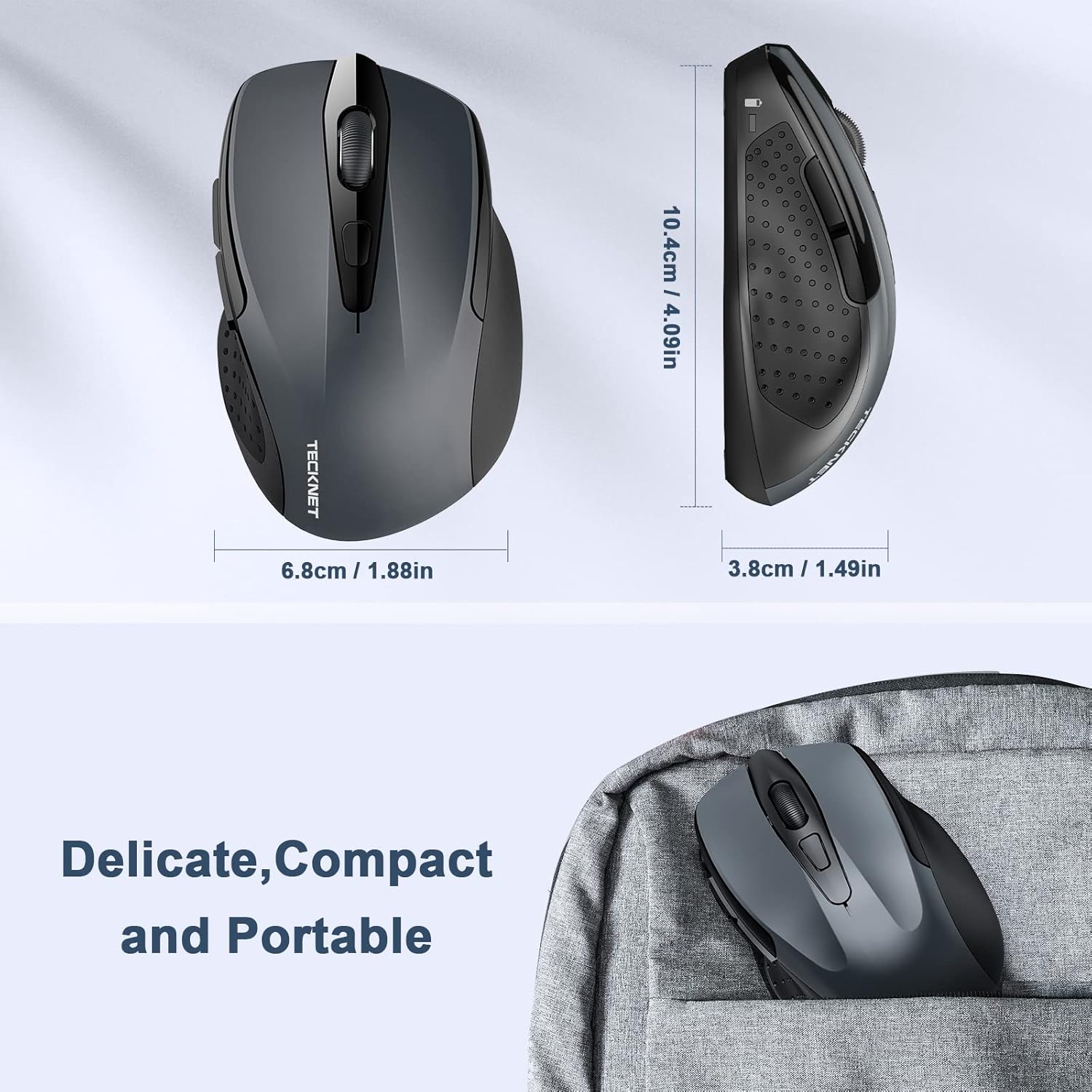 TECKNET PRO Mouse Senza Fili, 2600 DPI Mouse Wireless Ergonomico, 2,4G Mouse Ottico con Ricevitore Nano USB, 6 Pulsanti, Durata di Vita di 24 Mesi Compatibile con PC, Mac, Laptop