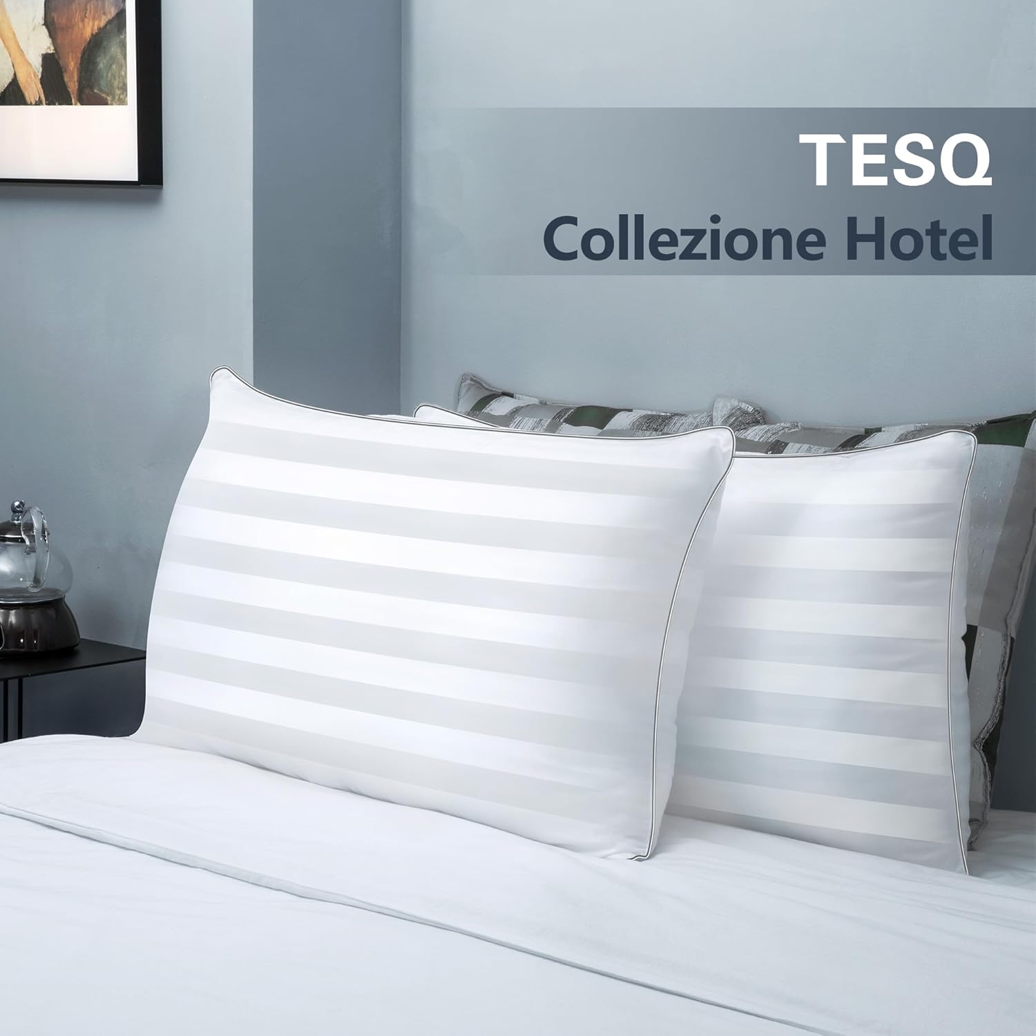 TESQ Cuscini Letto 50×70 cm Set di 2 Cuscino Morbidi e Confortevoli, Qualità Alberghiera di Lusso, Traspiranti e Anallergici, Ideali per Chi Dorme di Lato, sulla Schiena e a Pancia in Giù, Lavabili