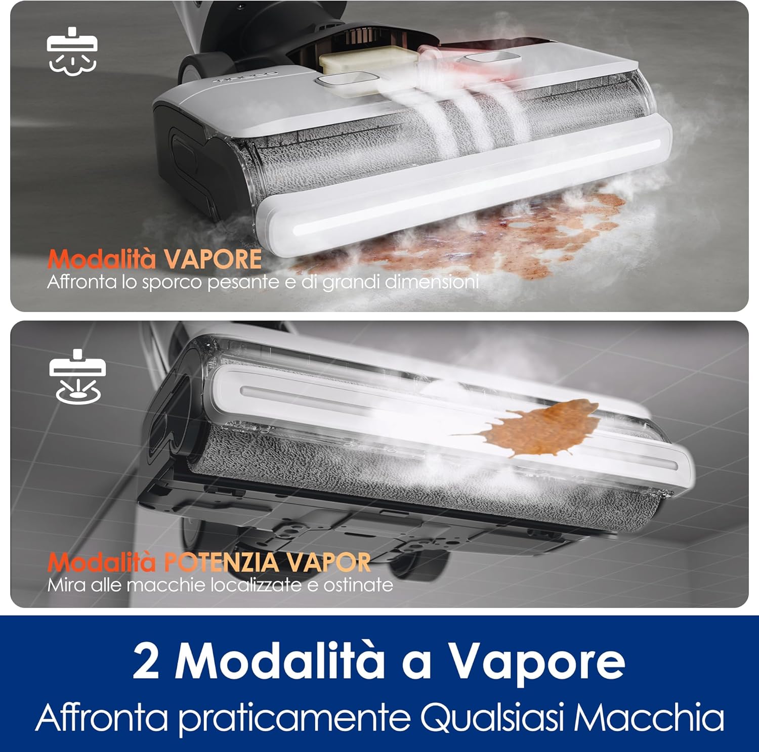 Potente Efficacia: Il vapore ad alta temperatura è molto efficace nel rimuovere macchie appiccicose e sporco persistente. Risulta particolarmente utile per pulire cucine e aree ad alto traffico.