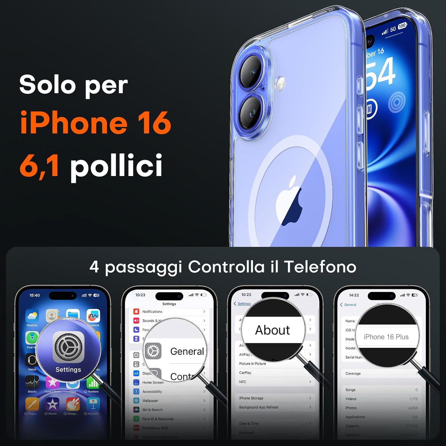 In mega sconto il prodotto TOCOL Cover Magnetica per iPhone 16 6,1 Pollic, Compatibile con MagSafe, Protezione Fotocamera Integrata, Senza Ingiallimento, Trasparente, ideale per chi cerca qualità e convenienza.