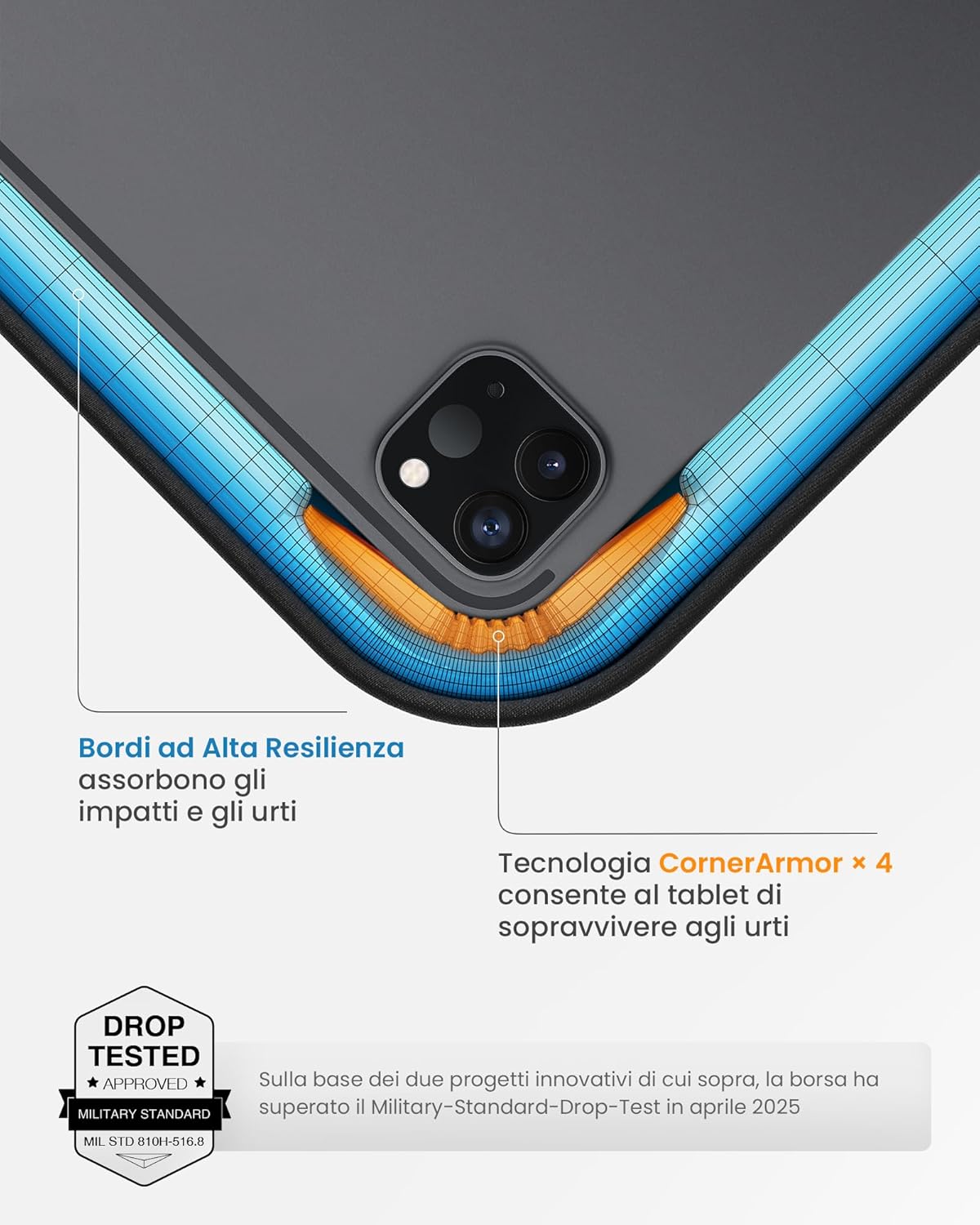 La custodia tomtoc 360° per tablet da 11 pollici è un accessorio versatile e ben progettato, ideale per chi utilizza dispositivi come l’iPad Air M3/M2, l’iPad Pro e l’iPad 10/9. La prima cosa che salta all’occhio è la qualità dei materiali: la custodia è realizzata in tessuto resistente e offre una protezione adeguata contro graffi e urti.